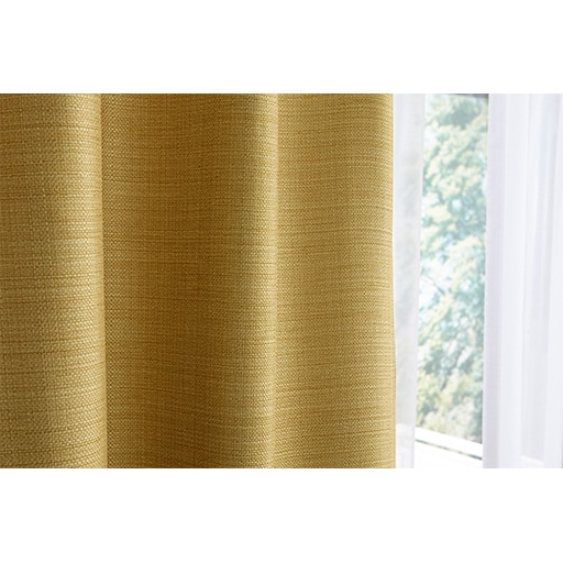 イエローほどよい光沢感のある、カジュアルタッチの遮光無地カーテンです。