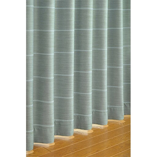 【ネット限定】〔形状記憶加工付き〕デニム地のような杢感のある、無地調の遮光カーテンです。アクセントの白いラインが窓辺をスタイリッシュに演出。安心の防炎機能をプラスしました。