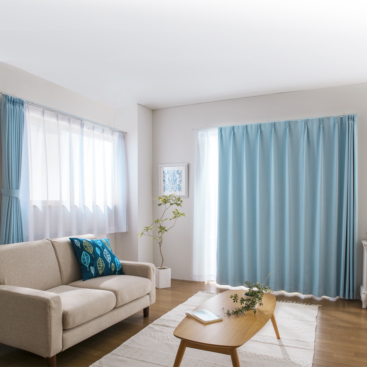 ブルー出入りの多いベランダ窓に最適な、1枚使いのカーテンです。