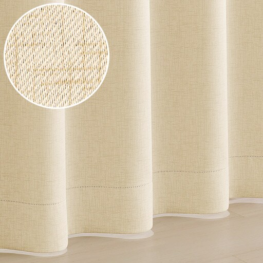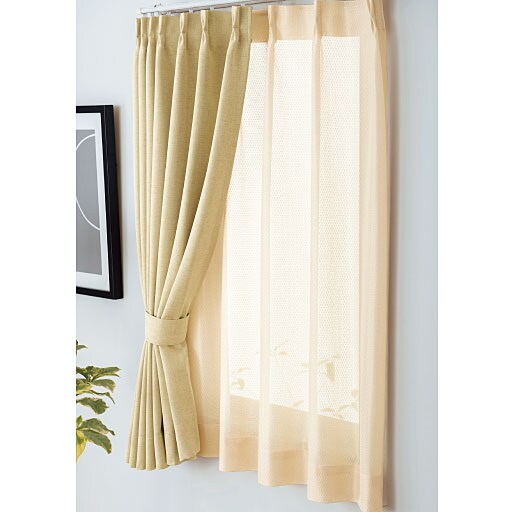 ベージュ(幅100×丈110cm)小窓にもおすすめ。芯入りのタッセル付きでカーテンもスッキリまとまります。
