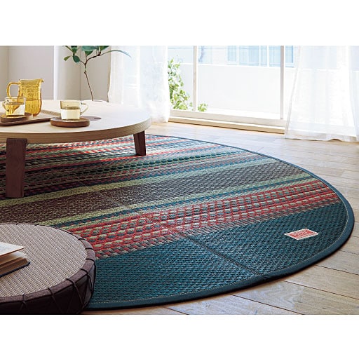 ブルー 円形(直径190cm)熊本産のい草を使用し、熟練の技術で美しく織り上げられたインテリアマットです。