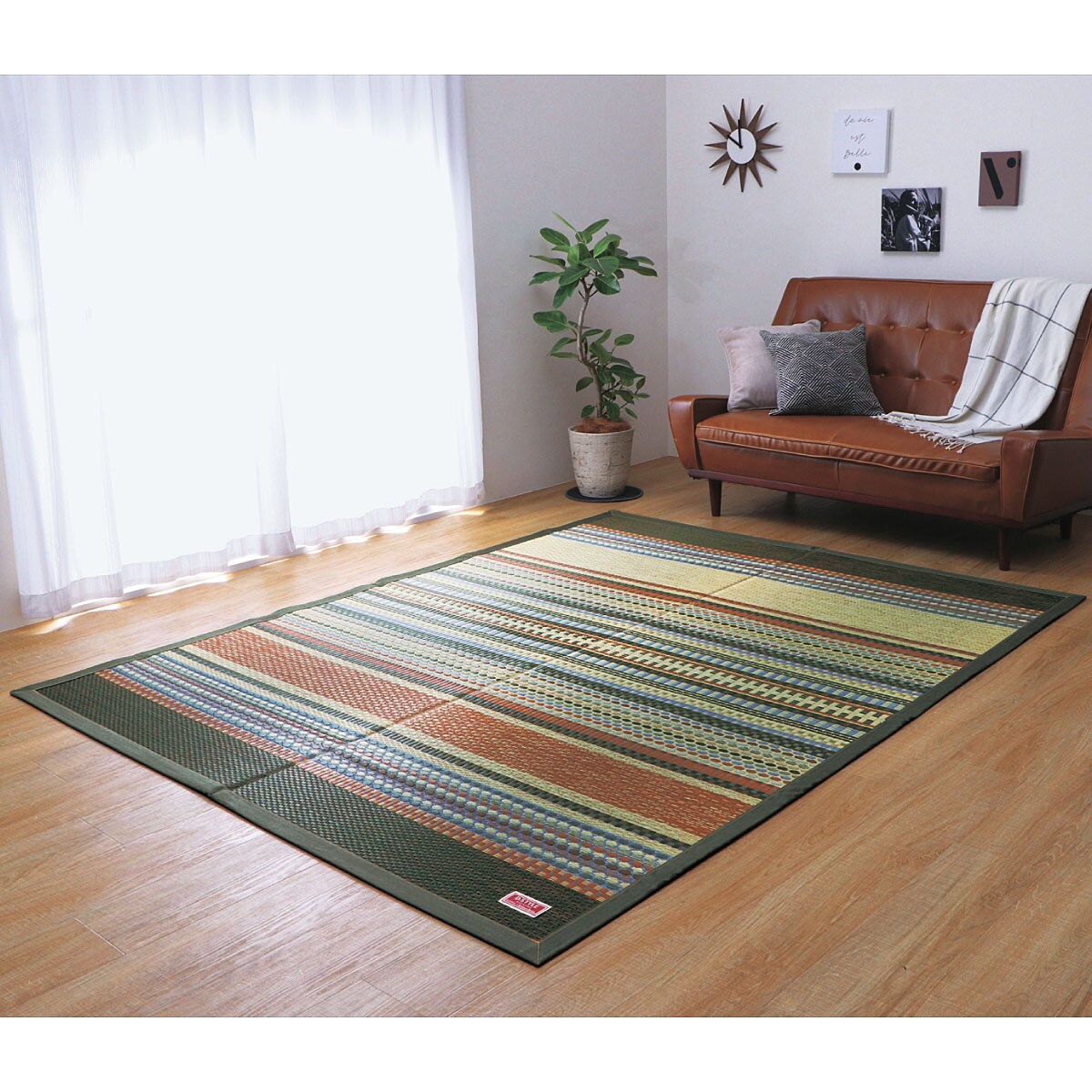 い草のデザインラグで、お部屋をおしゃれに演出。熊本産のい草を使用し、熟練の技術で美しく織り上げられたインテリアマットです。和室にも洋室にもマッチします。