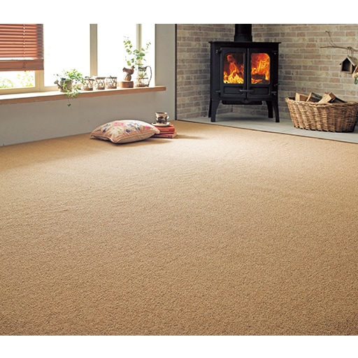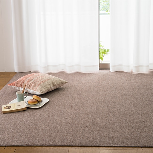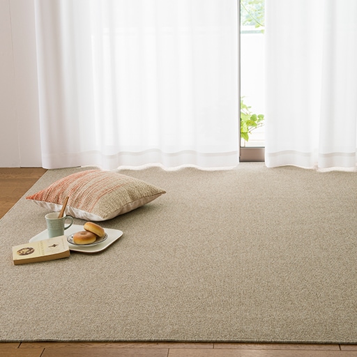 冬は暖かく夏はサラサラ涼しい、オールシーズン使えるウールラグ・カーペットです。防ダニ・抗菌加工で清潔にお使いいただけます。安心の防炎機能もプラスしました。ホットカーペット・床暖房にも対応しています。