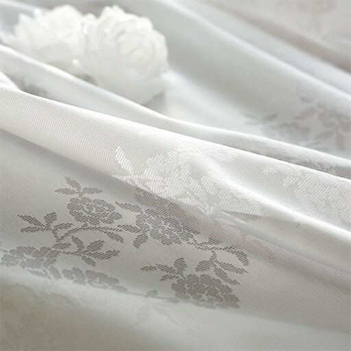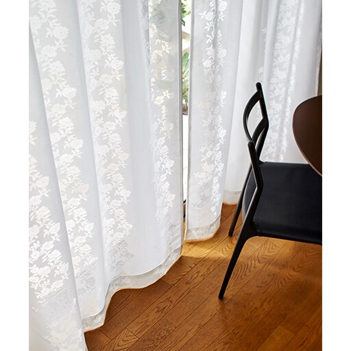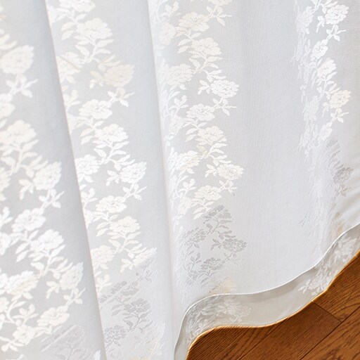 生地拡大(オフホワイト)エレガントなフラワーモチーフが窓辺をおしゃれに演出。