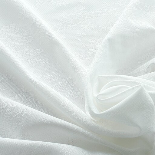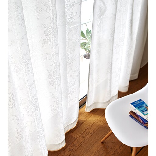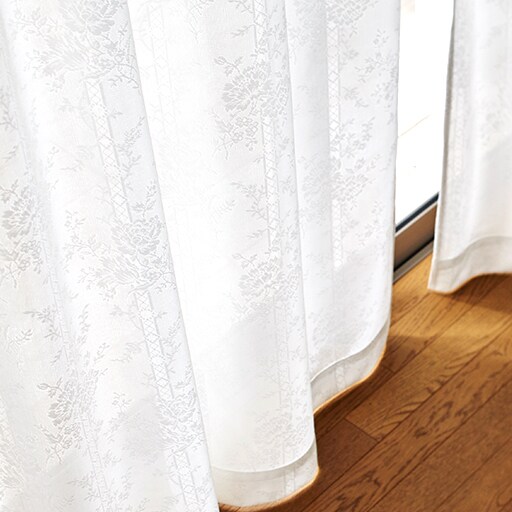 オフホワイトエレガントな草花模様が美しいミラーレースカーテンです。