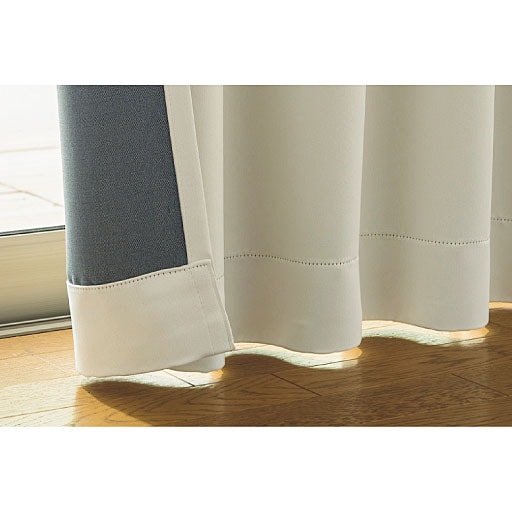 従来の白いカーテンは2~3級遮光が一般的でしたが、生地の織り方を工夫することで1級遮光効果を出すことに成功。強い直射日光もしっかり防ぎます。