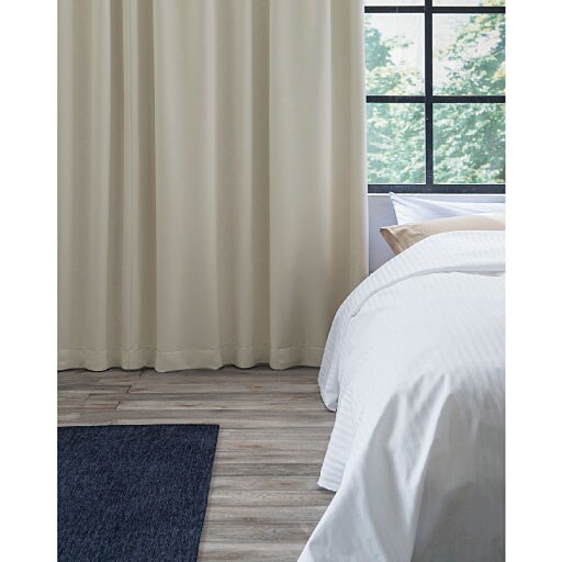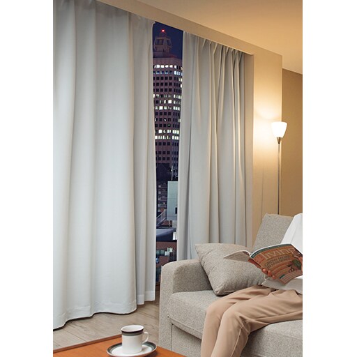 カーテン両端の奥行き方向への折り返し部分を作ることによって、両サイドからの冷気や光漏れを防ぎ、保温効果を高めることができるカーテンです。真っ白なカラーの秘密は、黒い遮光糸が表面に出ない特殊な織り技法。遮光性はそのままに、お部屋を明るく見せる白度の高い生地を生み出しました。シワになりにくく、なめらかなマシュマロタッチで一度触れるとクセになりそう。夜にカーテンを閉め切っても、お部屋を広く明るい印象に保てます。充実のサイズ展開で小窓から幅広窓まで対応します。