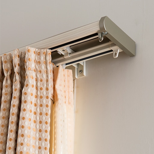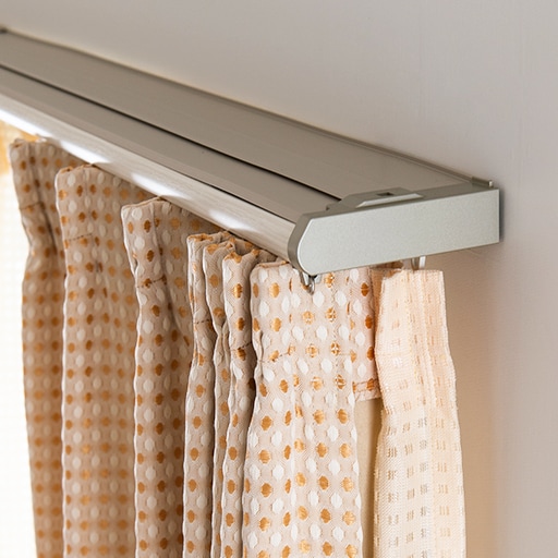 ダブルレールで、カーテンとレースカーテンを吊るすことができます。静音ランナーで開け閉めも静か。