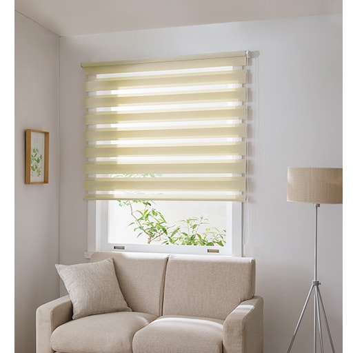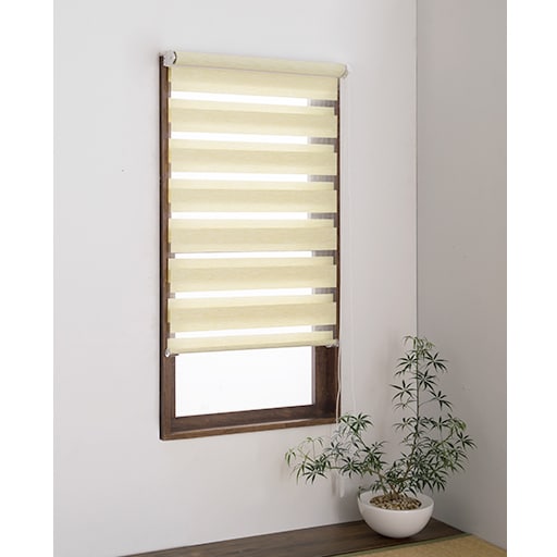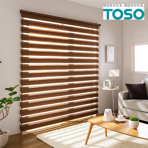 ロールスクリーンだと光の調整ができない、でもブラインドだとスタイリッシュすぎる…そんなお悩みにお応えした、調光ロールスクリーンです。2種類の生地をボーダー柄に織り込み、スクリーン前後の重なりを調整することで光の採り入れ具合をブラインドのように自在にコントロールできます。カーテンレールにも取り付け可能。見た目もすっきりシンプルなので、和室・洋室問わずお使いいただけます。カーテンレールの国内トップシェアを誇るインテリアメーカー「TOSO(トーソー)」が手掛けています。