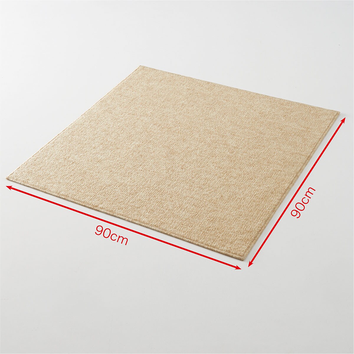 程よいクッション性のある、ループパイル仕様のラグです。90cm×90cmのコンパクトサイズで、必要な場所のサイズに合わせて敷くことができます。裏面は吸着加工でずれにくく、掃除機もスムーズにかけられます。汚れても洗濯機で丸洗いできるので安心。子供部屋や廊下敷き、フローリングの傷隠しやガード用としても、リビングなどの寒さ対策にも。用途や場所に合わせて組み合わせは自由自在。省スペース仕様なので干す際も収納もコンパクトに。