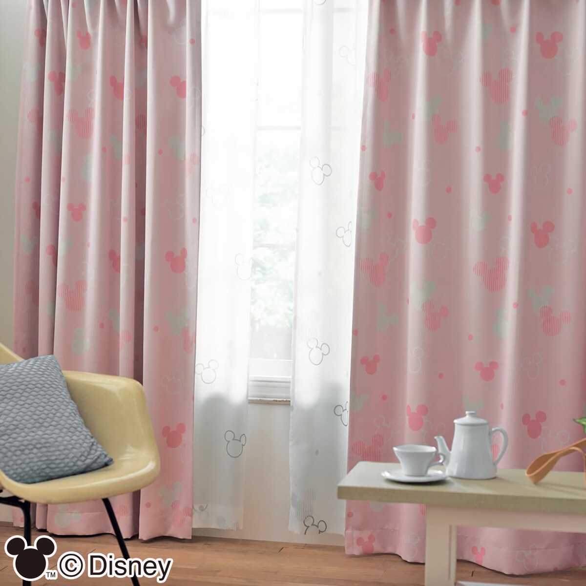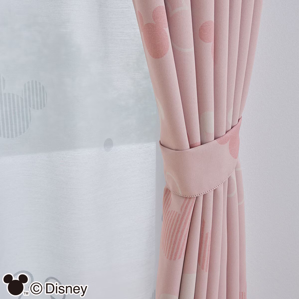 ピンクおしゃれなミッキーモチーフの遮光カーテンです。