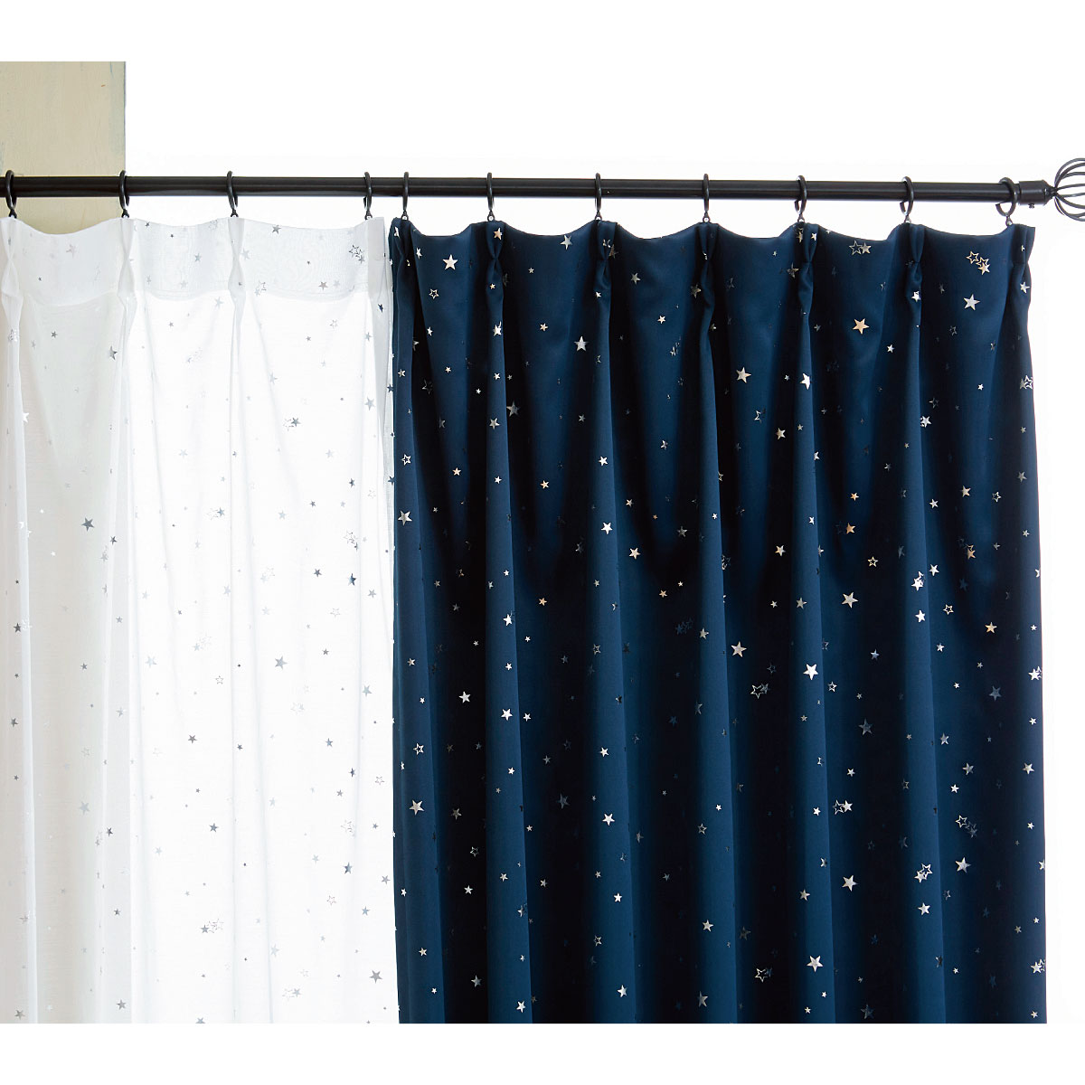 ネイビー箔プリントで描かれた星がきらめく遮光カーテンです。