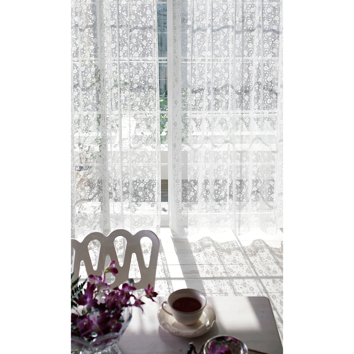 光を受けて浮かび上がるバラのシルエットが美しい、花柄のチュールレースカーテンです。やさしい光をお部屋に取り込み、ゆったり心地いい時間が流れます。
