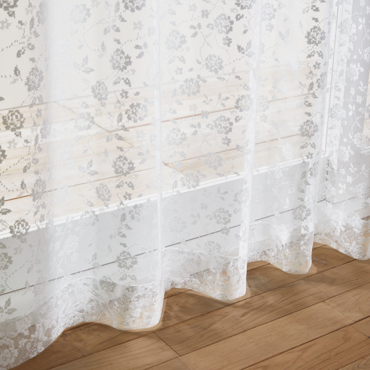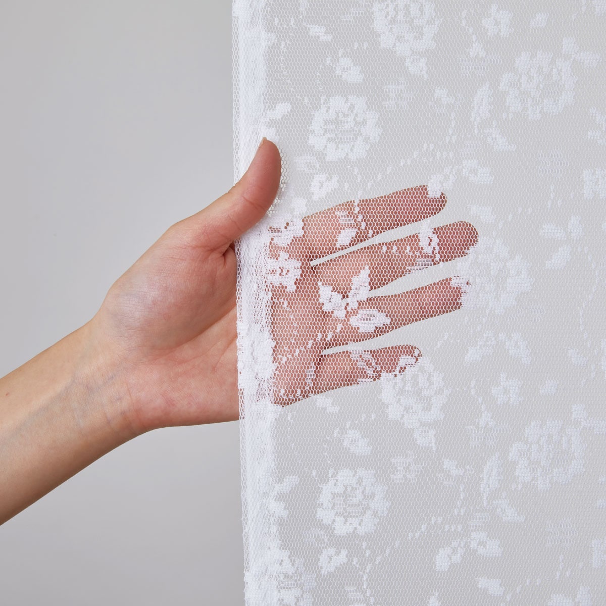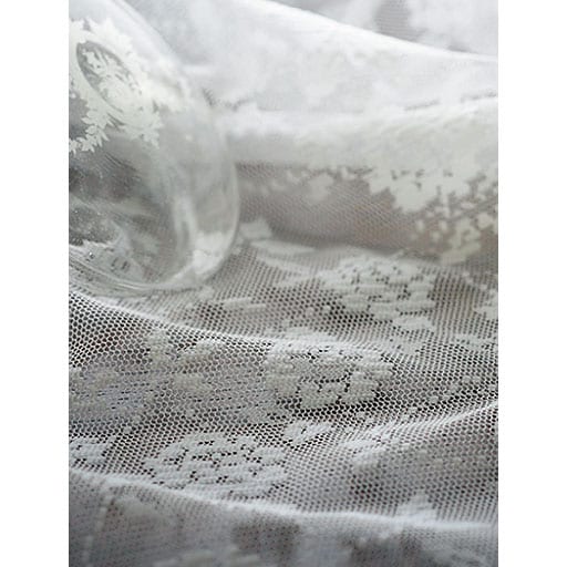 ホワイト光を受けて浮かび上がるバラのシルエットが美しい、チュールレースカーテンです。