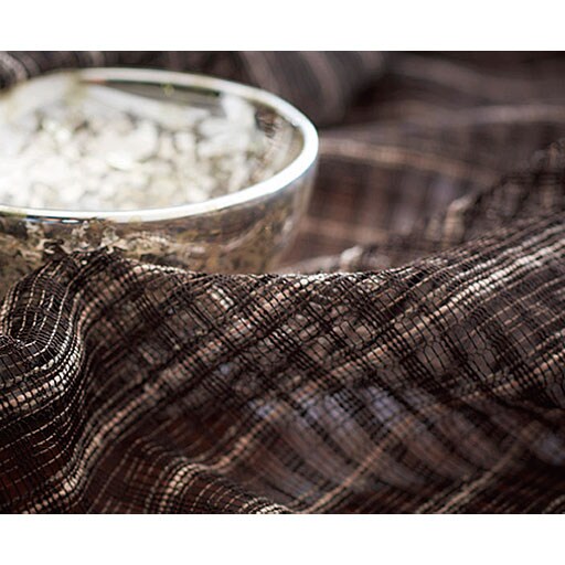 ダークブラウン太さの異なる5種類の糸で編み上げた、ざっくりとしたレース生地。