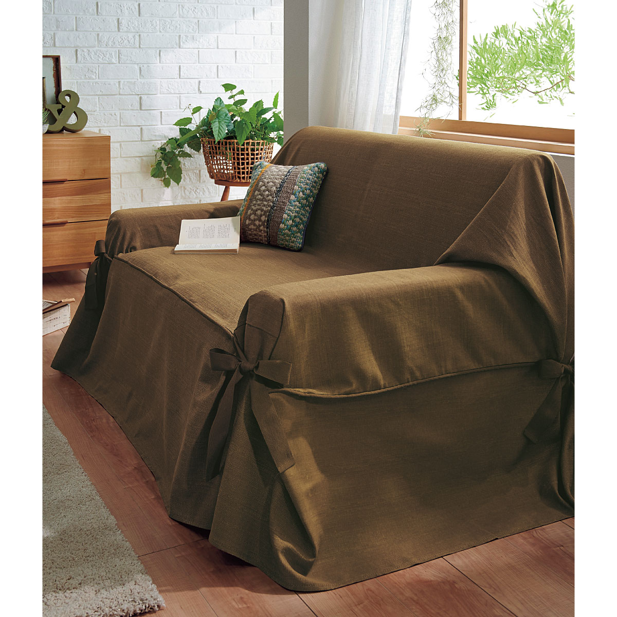 サッと被せて、ソファのスタイルをアップさせるカバーです。肘部分の紐を縛ってリボン結びにするだけで、いつものソファがおしゃれに変身。