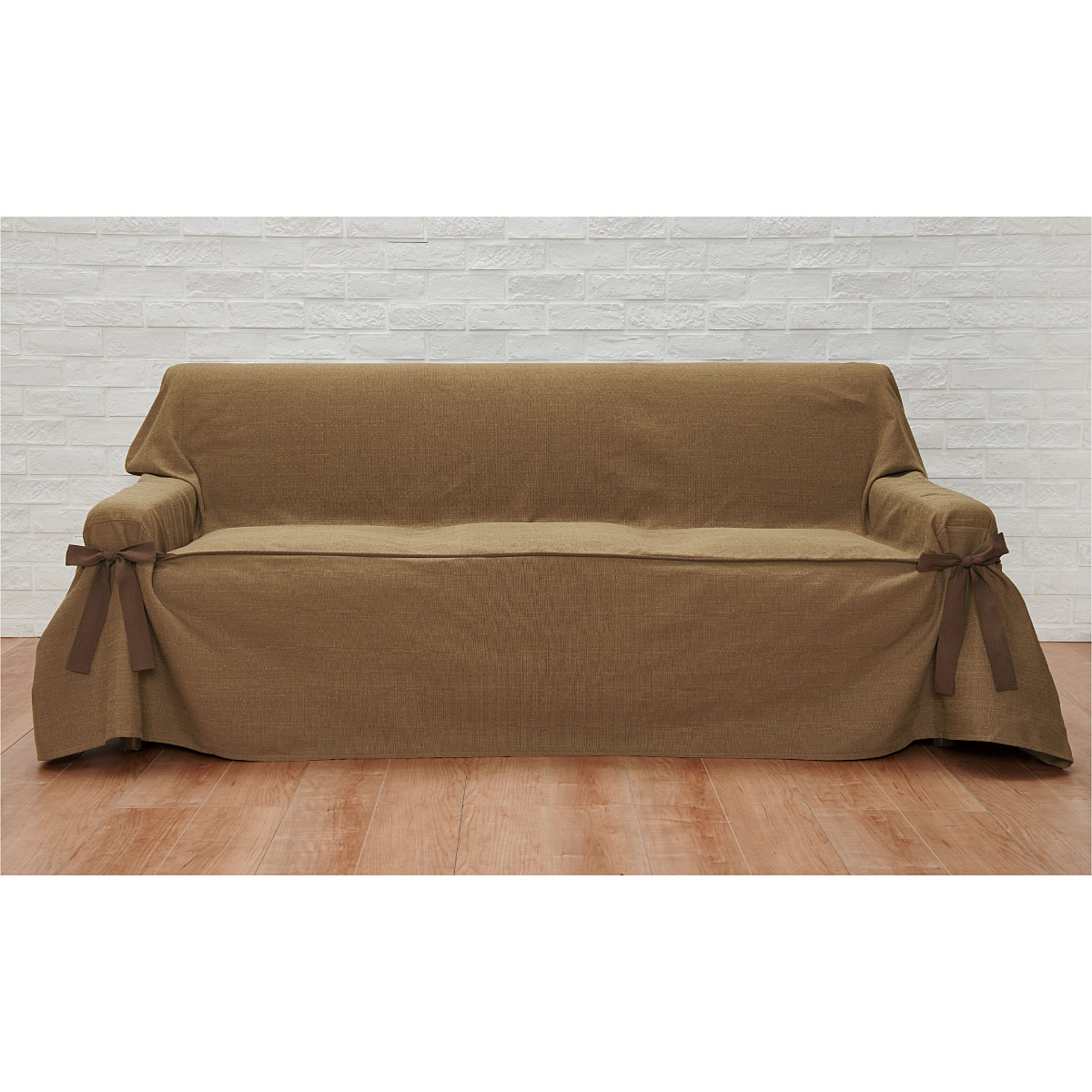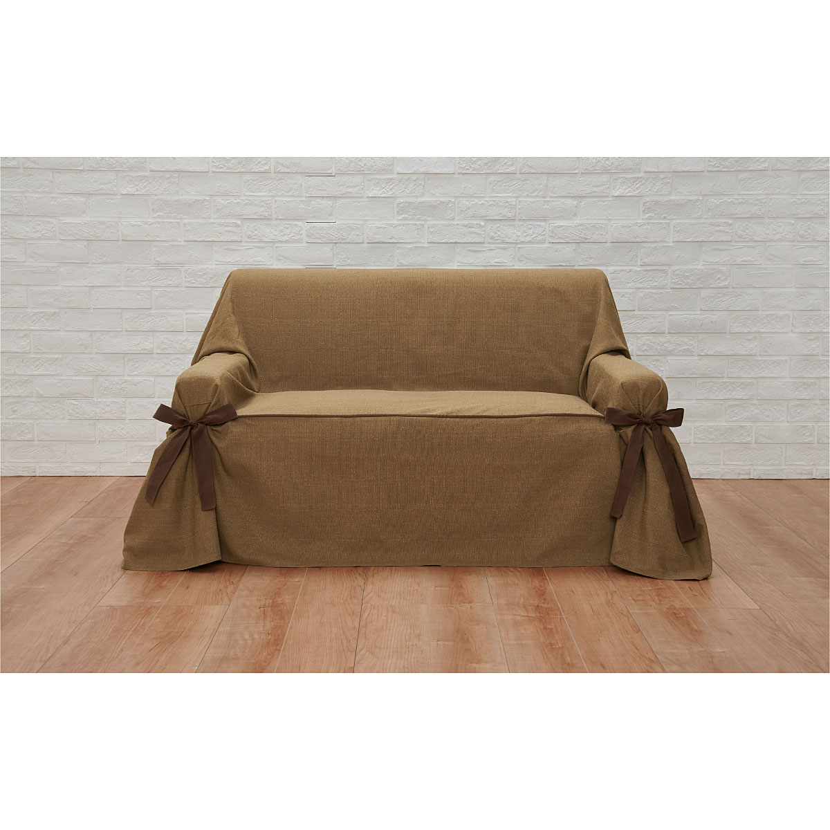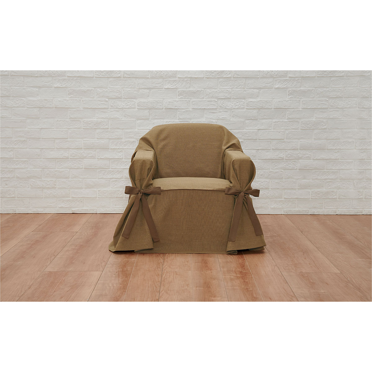 サッと被せて、ソファのスタイルをアップさせるカバーです。肘部分の紐を縛ってリボン結びにするだけで、いつものソファがおしゃれに変身。