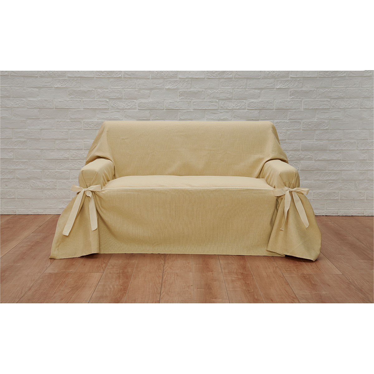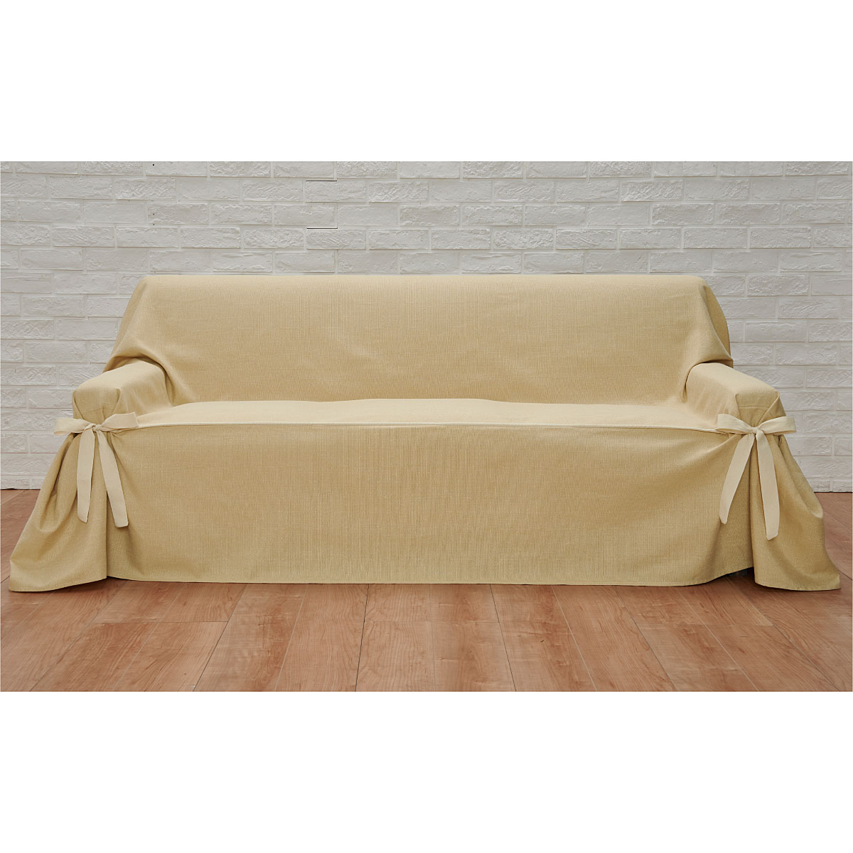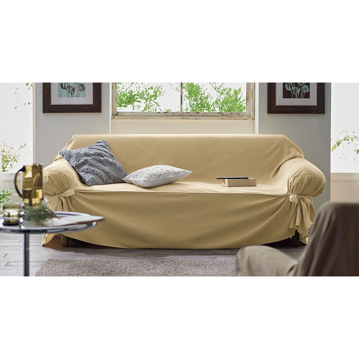 サッと被せて、ソファのスタイルをアップさせるカバーです。肘部分の紐を縛ってリボン結びにするだけで、いつものソファがおしゃれに変身。