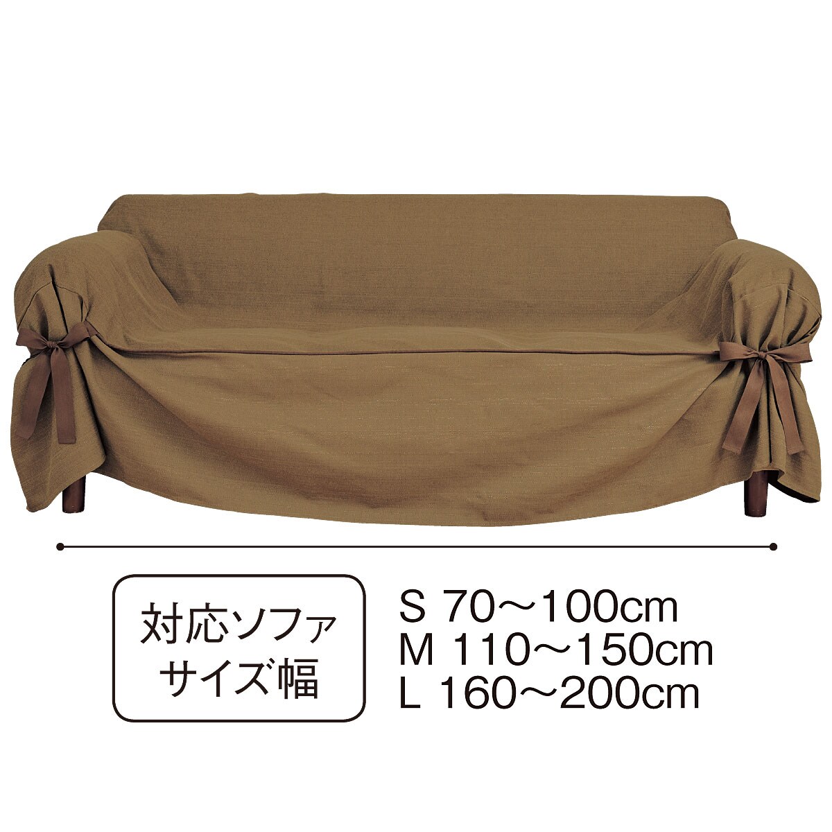 清潔感あふれる平織りの生地にリボンが美しく映える、上品なデザインのソファカバーです。古いソファにもふわっと掛けるだけで、まるで新品のようにお部屋全体をセンスアップ。ひっかきにも強い生地だから、ペットを飼っている方にもおすすめです。汚れが目立ちにくいブラウンと、部屋が明るい印象になるベージュをご用意しました。汚れても洗濯機で丸洗いできるので清潔にお使いいただけます。