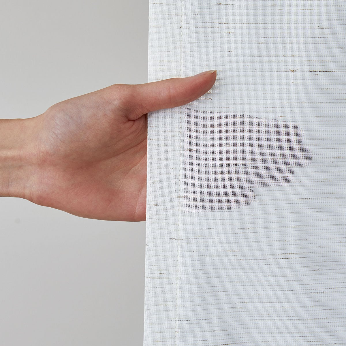 綿と麻を混紡した優しい質感のレースカーテンです。日本国内で丁寧に編み立てられ、綿麻混ならではの自然な風合いがお部屋をナチュラルな印象に。ミラー効果で昼間の外からの視線を遮り、プライバシーを守ります。UVカット効果で家具の日焼け防止にも。遮熱・保温効果にも優れているので熱気や冷気を窓際で遮り、冷暖房効率アップも期待できます。小窓から幅広窓まで対応する充実のサイズ展開をご用意しました。汚れたらご家庭の洗濯機で丸洗いできます。