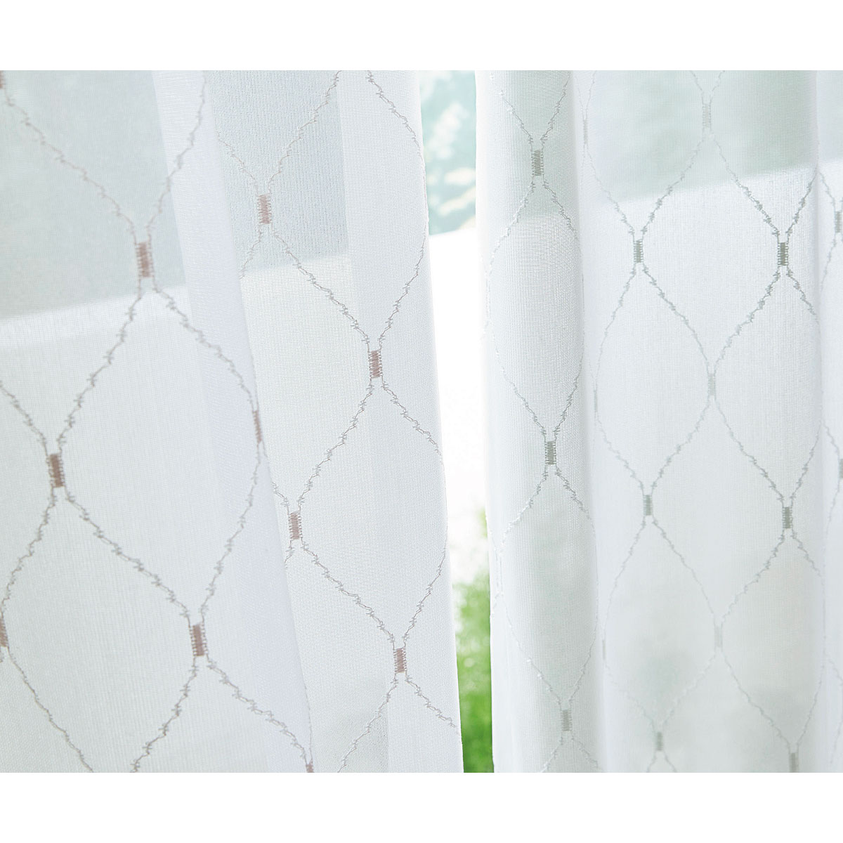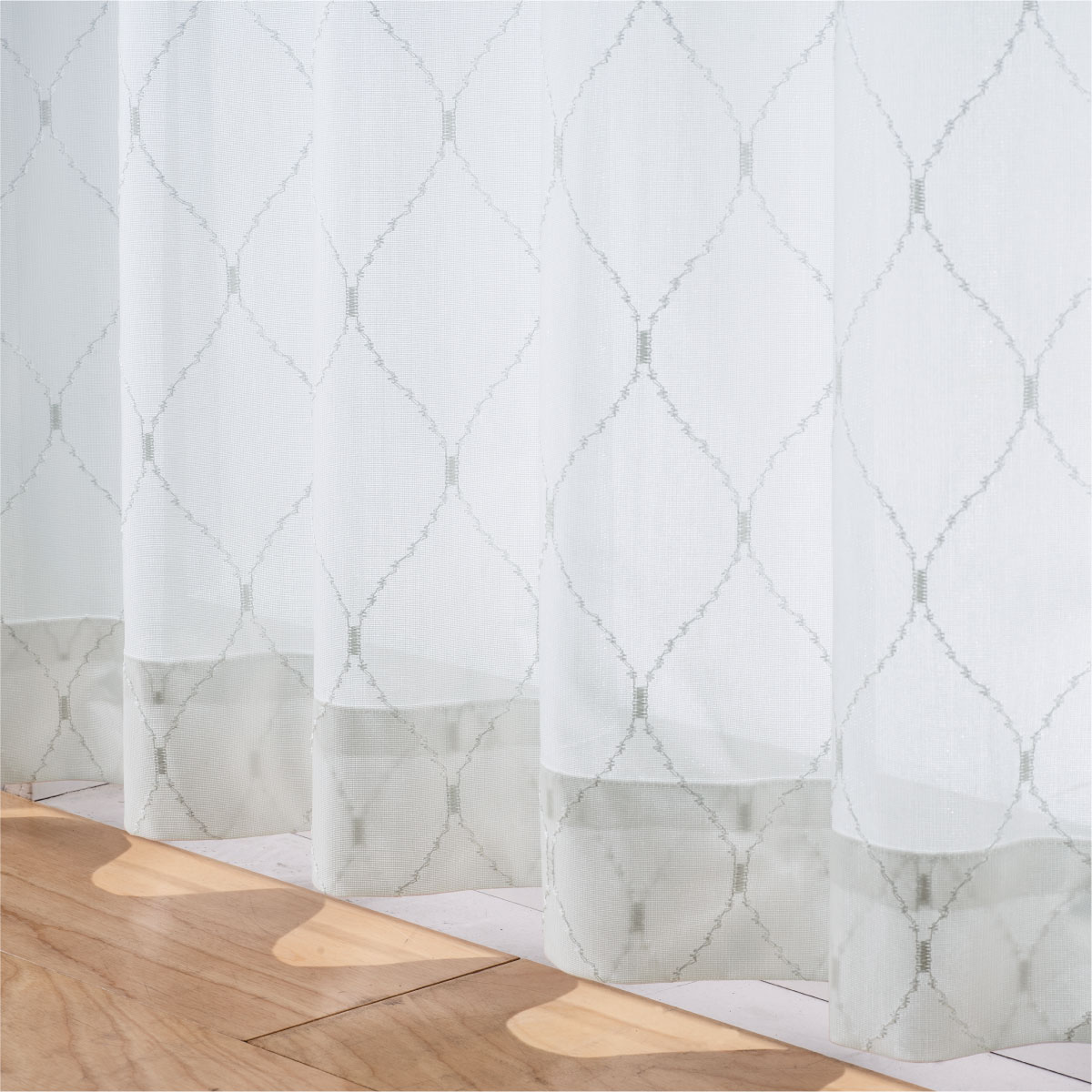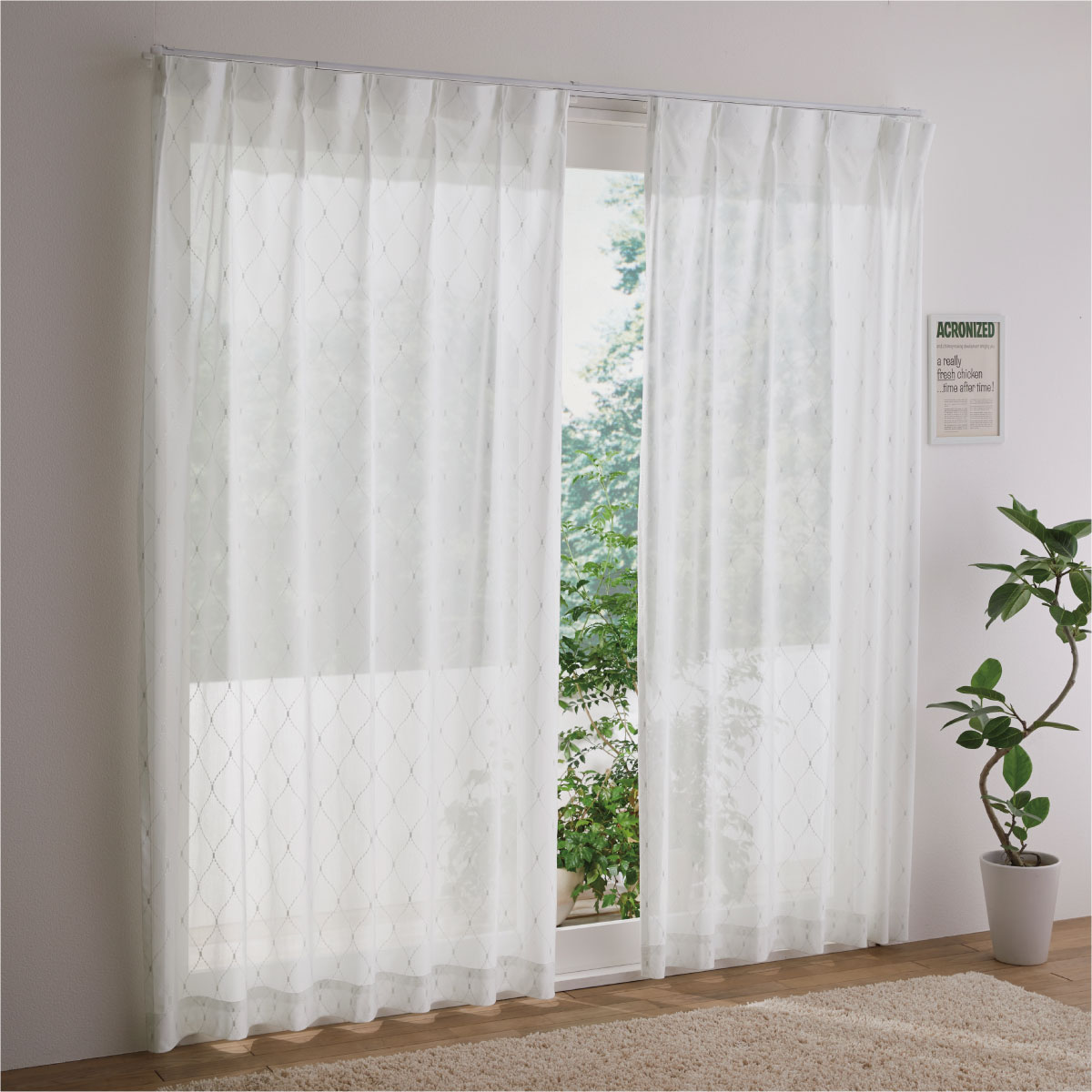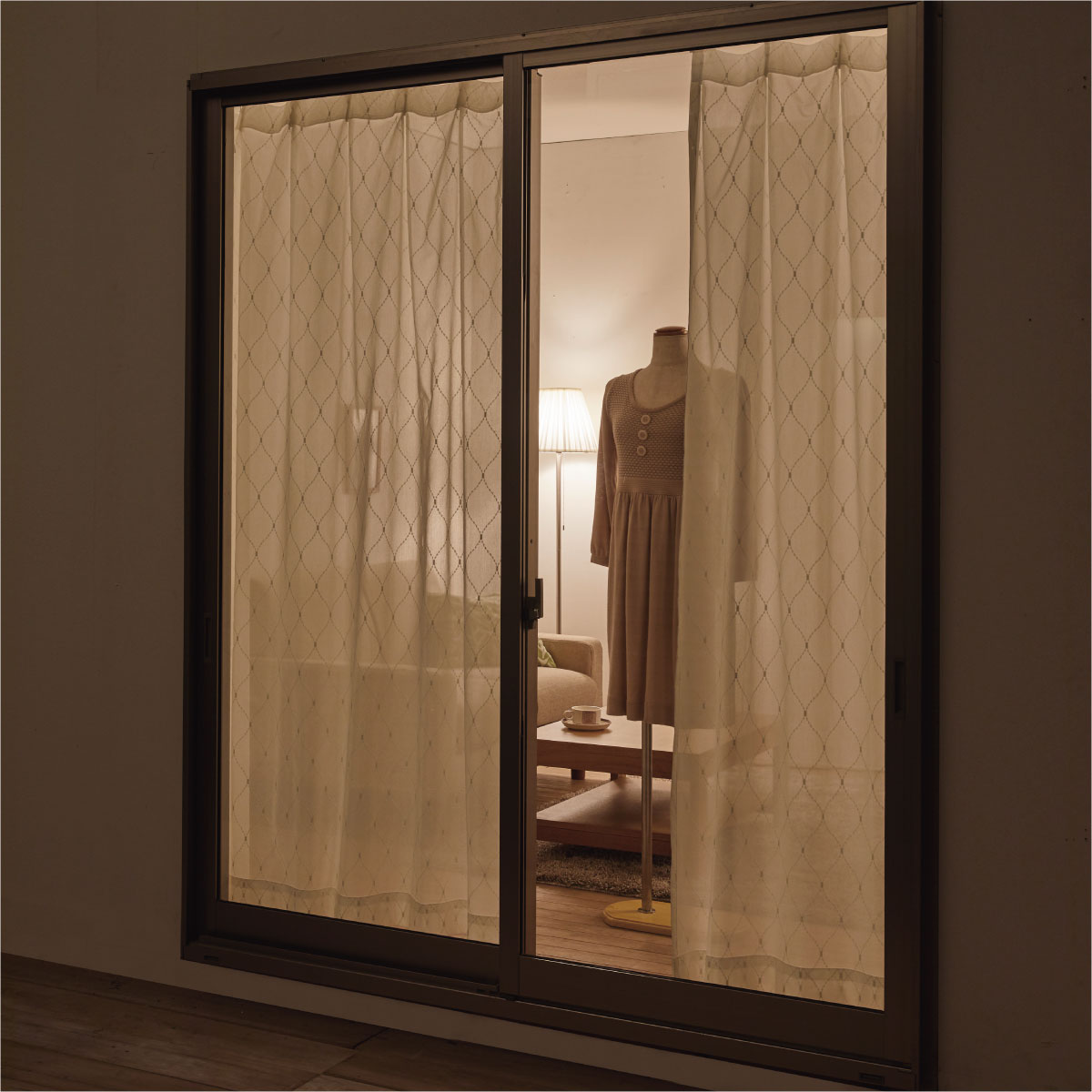 繊細な格子柄が窓辺をおしゃれに演出するレースカーテンです。ミラー効果で昼間の外からの視線を遮り、プライバシーを守ります。遮熱・保温機能、UVカット機能もプラスしました。