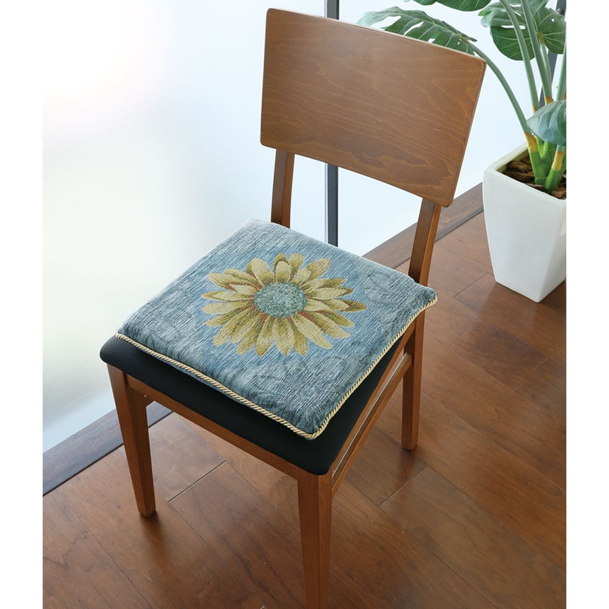 ブルージャカード織りのマーガレット柄が美しい、イタリア製シートクッションです。