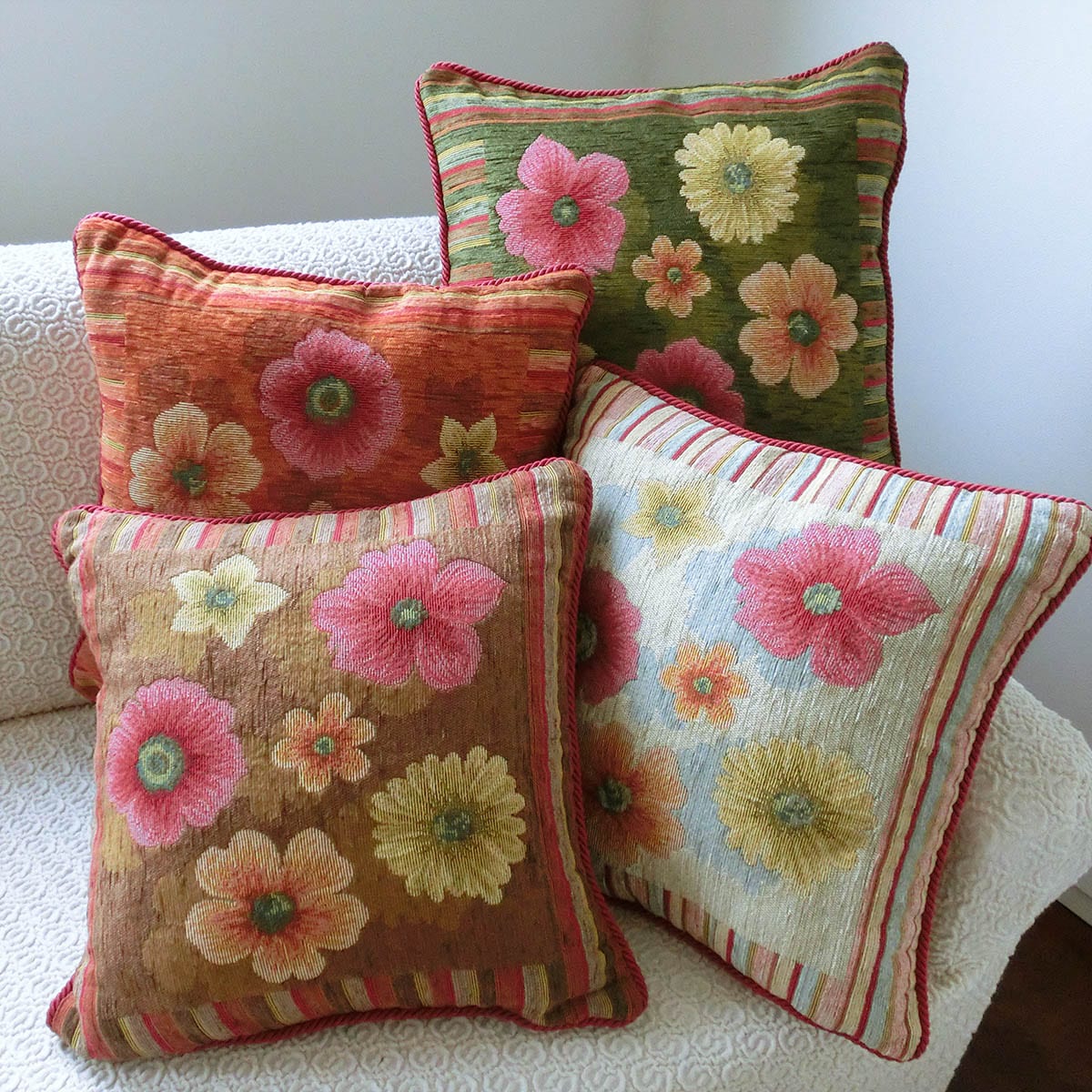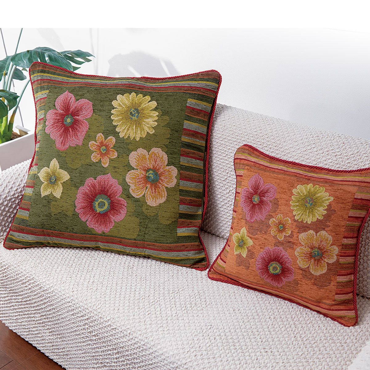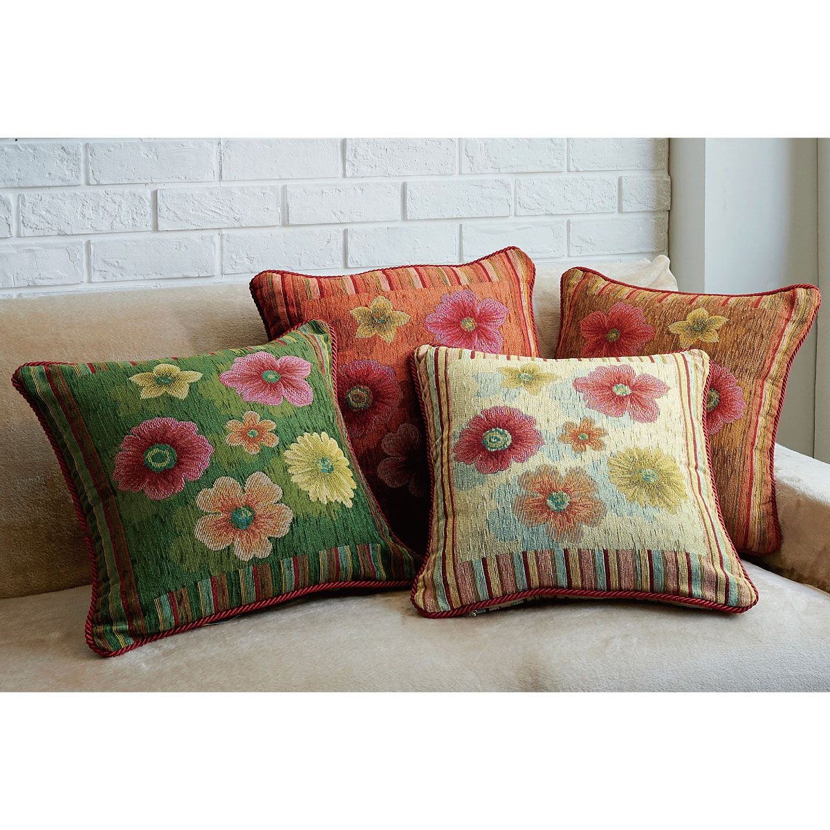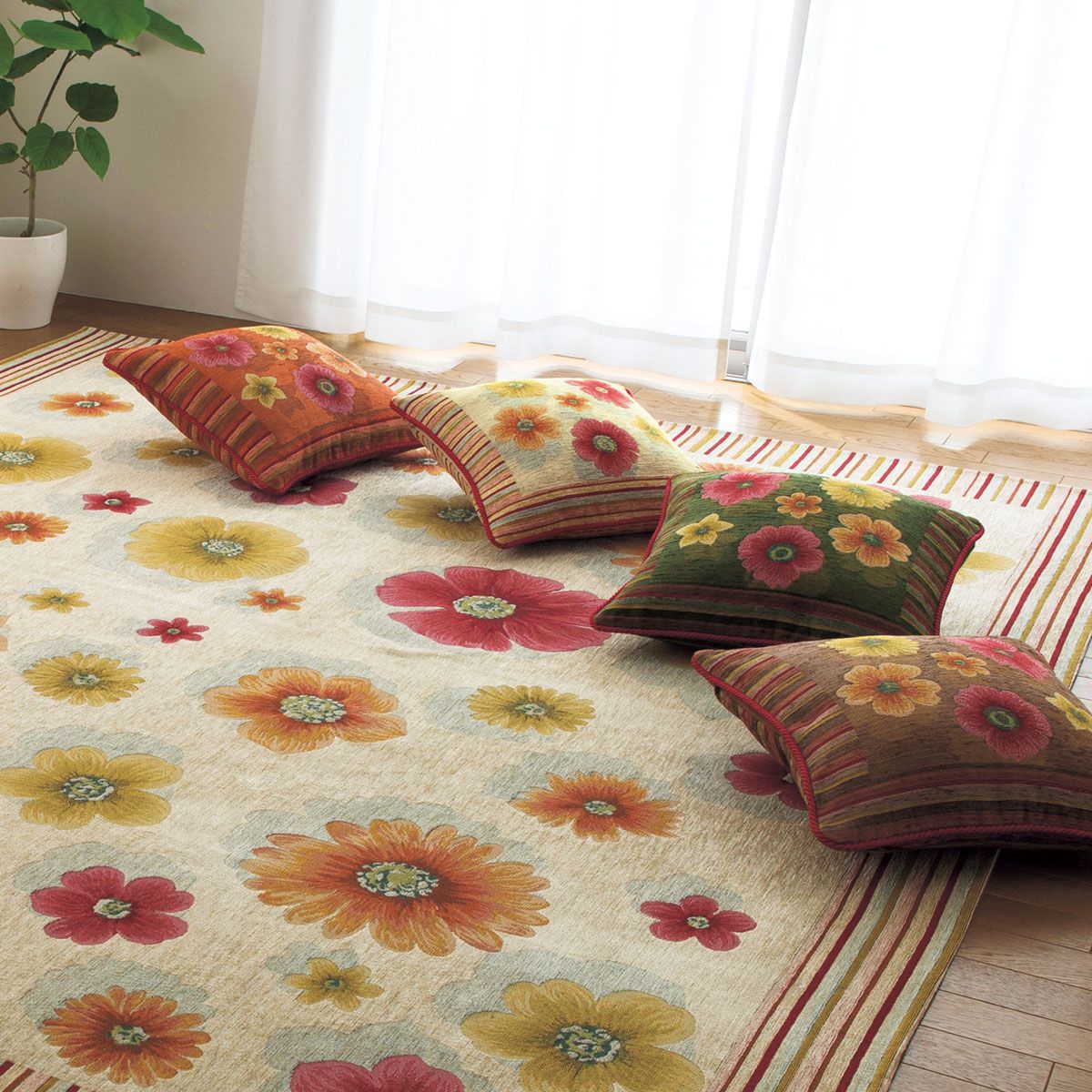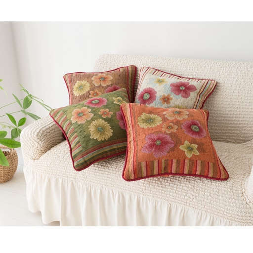 (上から時計回りに) オレンジ・ブラウン・ベージュ・グリーン(横45×縦45cm)アネモネの花柄が美しい、イタリア製クッションです。