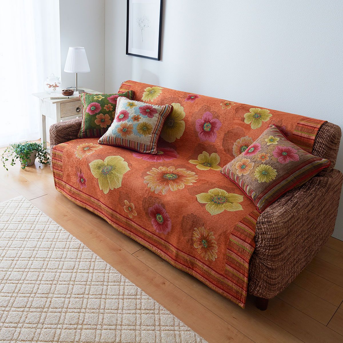 (上から) ベージュ・グリーン(横45×縦45cm)※商品はクッションです。ソファカバーはVC-486を使用しています。