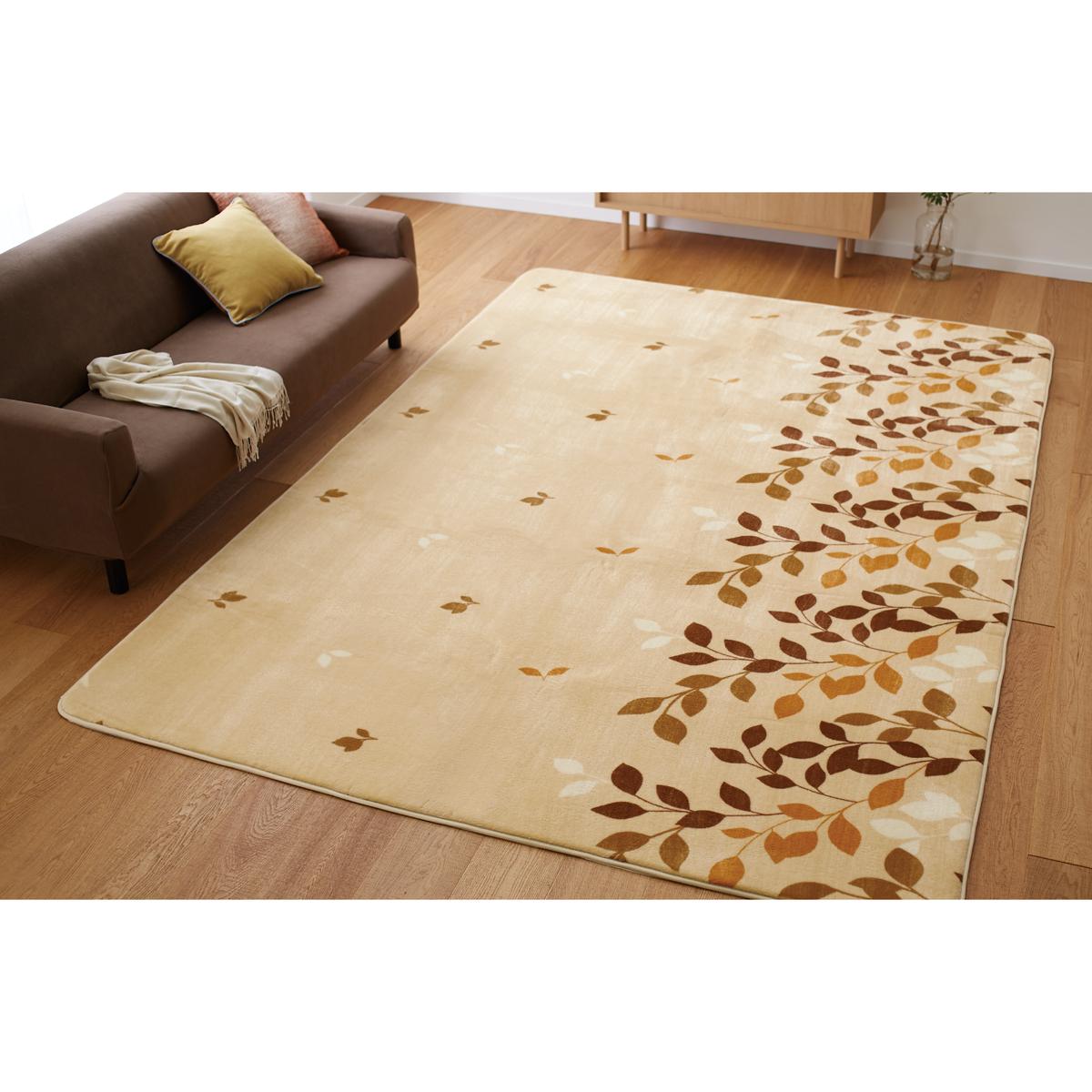 飽きのこないリーフ柄のふっくらラグです。さりげないお部屋のアクセントにもぴったり。