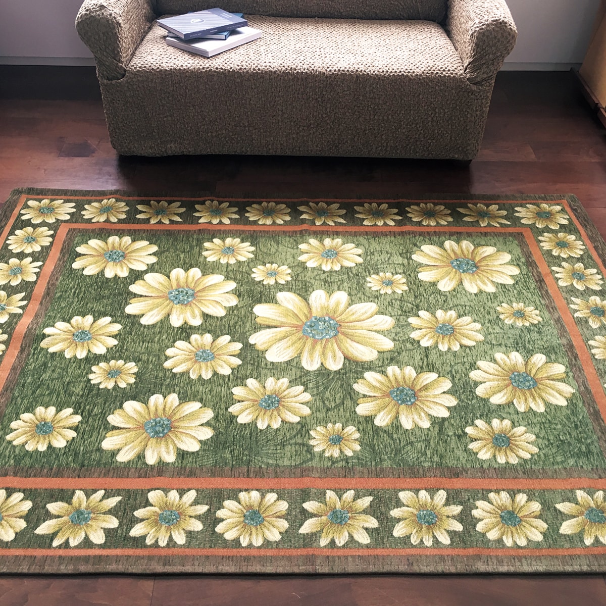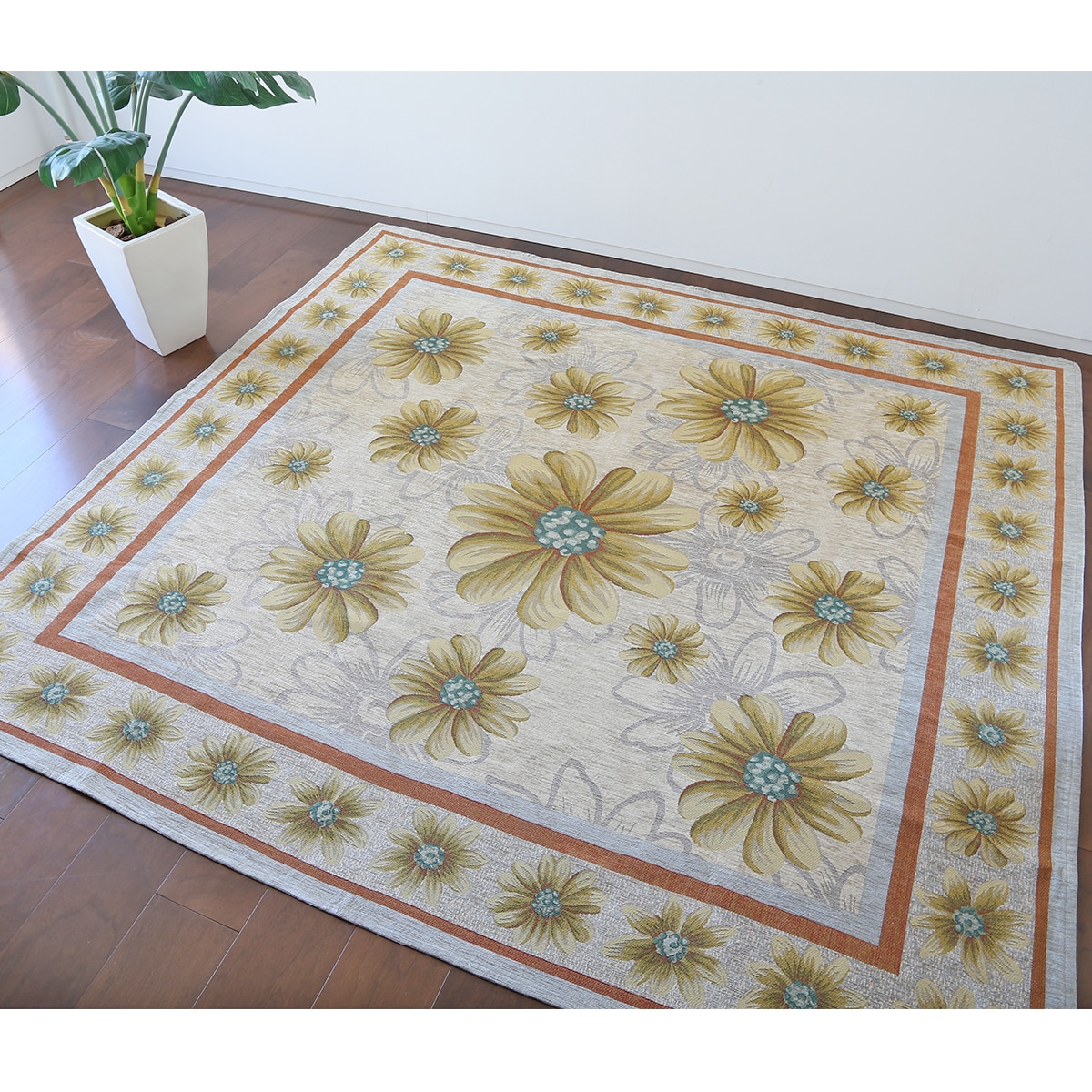 グリーン(横200×縦200cm)大輪のマーガレット柄が美しい、イタリア製ラグ&マットです。