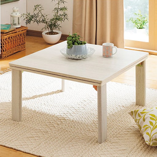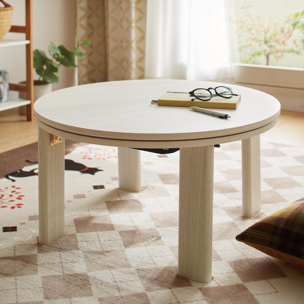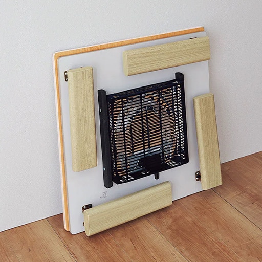 こたつの出しっぱなしは嫌、違う部屋でも使いたい、という方にもおすすめな折りたたみ式。天板はホワイトとナチュラルのリバーシブルで楽しめます。