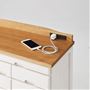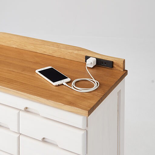 いろいろなサイズの引き出しが付いたリビングキャビネット。みんなが使う小物を仕分けして収納できます。定位置を決めれば、出しっぱなしや物の迷子も解消♪扉と引き出し各1ヶ所に鍵をつけました。2口コンセント付きだから、電話機・FAX台の電源はもちろん、携帯電話の充電にも便利です。前板には桐天然木を使用。自然な風合いがリビングや玄関にピッタリ。角が丸く優しい印象の仕上げです。