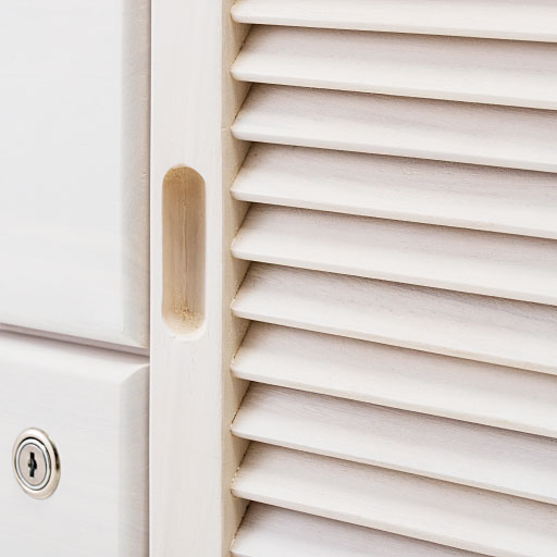 前板には桐天然木を使用。自然な風合いがリビングや玄関にピッタリ。角が丸く優しい印象の仕上げです。