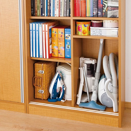 ライトブラウン (左から) O・P・P書籍はもちろん掃除機やミシンなどの家電も収納OK。