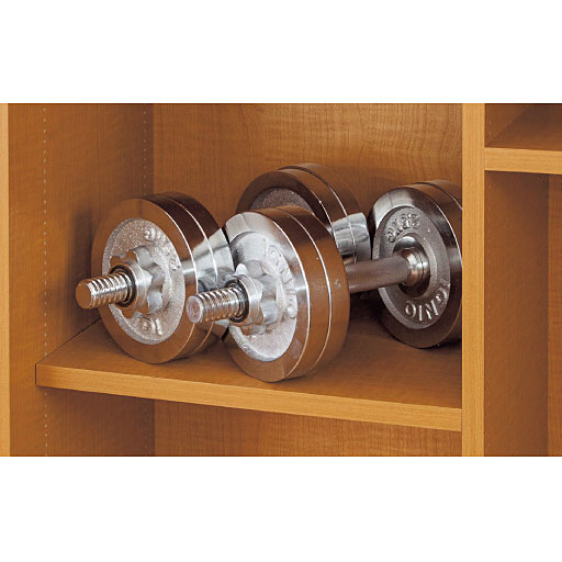ライトブラウン棚板1枚の耐荷重は約20kg! たっぷり収納しても安心です。