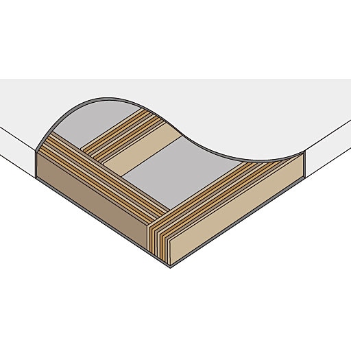 薄くスライスした板を縦方向に重ねて接着することで強度を増した積層合板(LVL)を芯材に使用。 ※画像はイメージです。