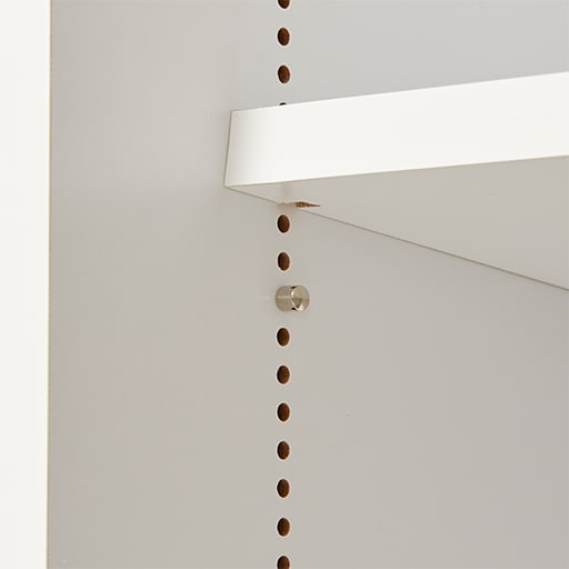 ホワイト棚板を支えるダボは金属製で頑丈な造り。1cm単位で調節が可能です。