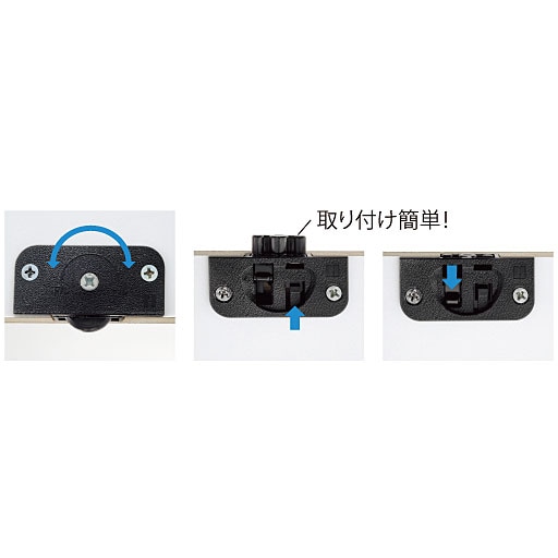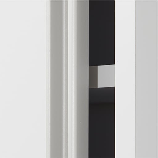 扉上部には組立時、引き戸の取り付けが簡単で扉とレールを固定するパーツを採用。扉下部に付いているレールは、取り付け後ガタツキの調整が可能です。