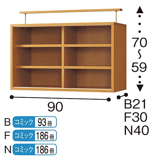 上置き B (奥行21/幅90cm)・F (奥行30/幅90cm)・N (奥行40/幅90cm)※寸法の単位はcmです。撮影の為、扉は外しています。