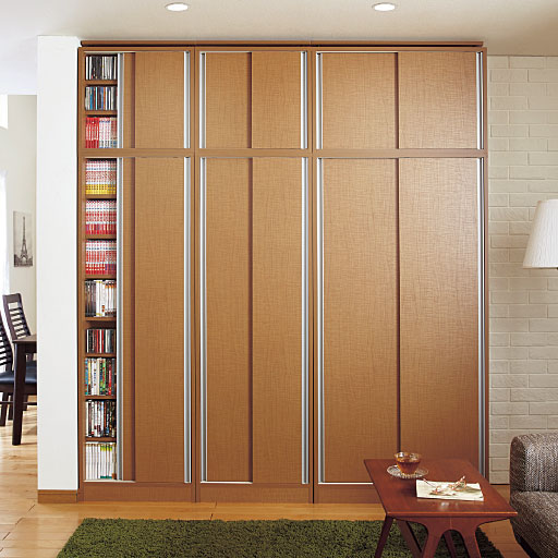 書籍はもちろん掃除機やミシンなどの家電も収納OK。扉をスッと閉めれば隠せるので、来客時も気になりません。※扉は外して撮影しています。