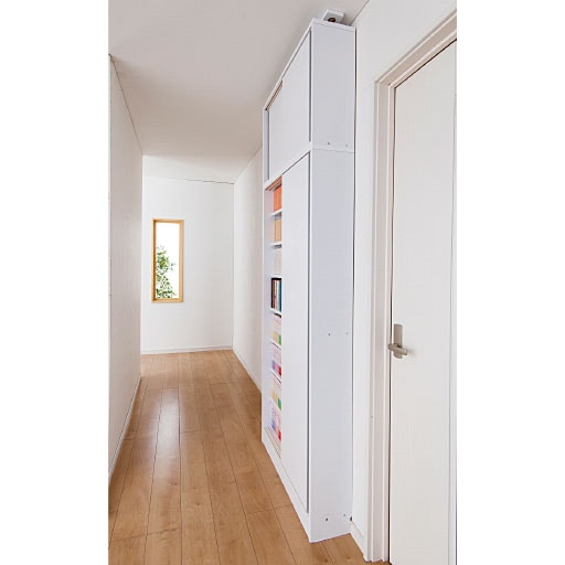 奥行19cmタイプなら、廊下などの狭いスペースにも設置できます。※扉は外して撮影しています。