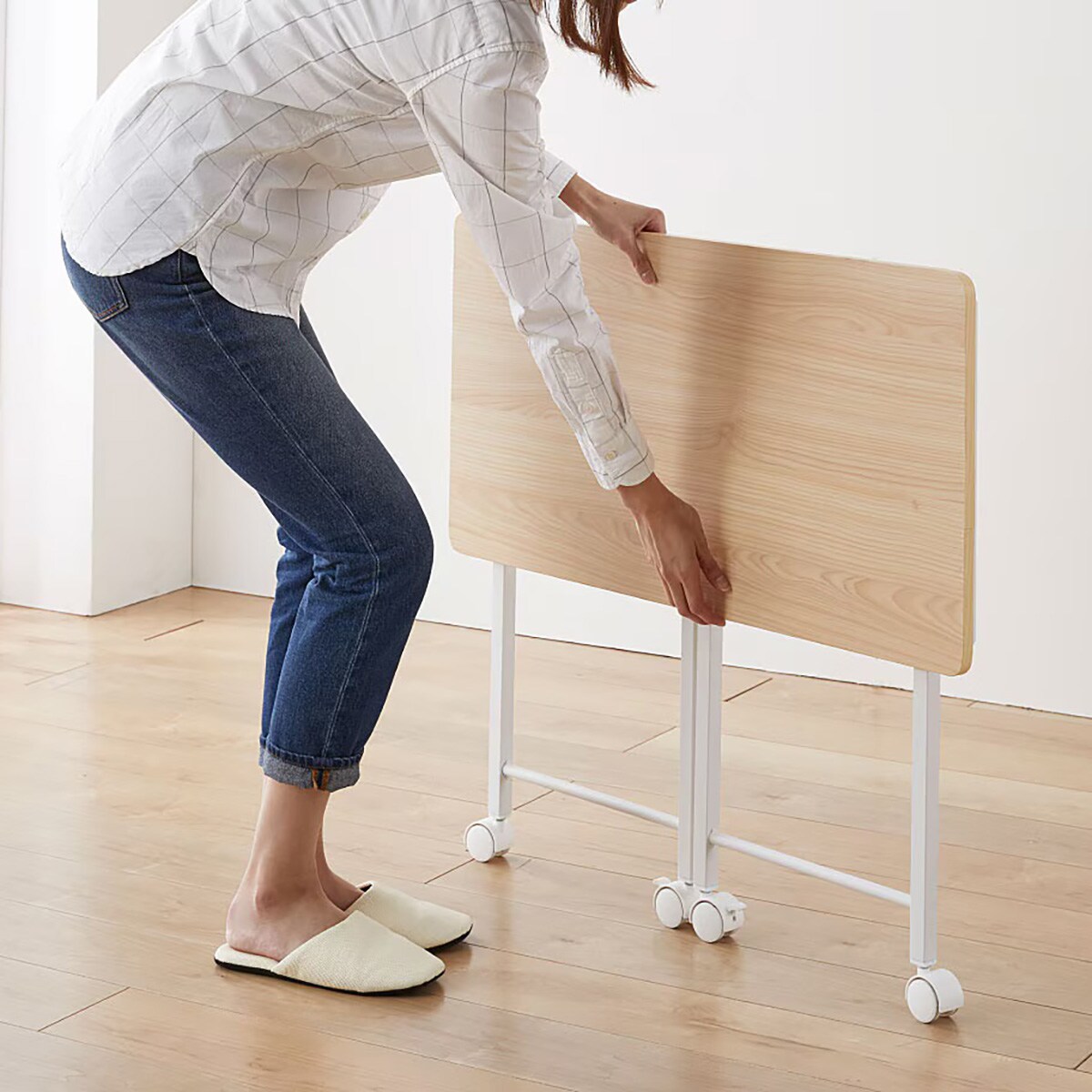 パッと出して、パッと収納。便利な折りたたみ式のキャスター付きデスクです。リモートワーク・テレワーク用のデスクとしてもおすすめ。