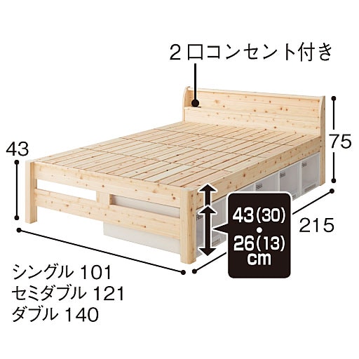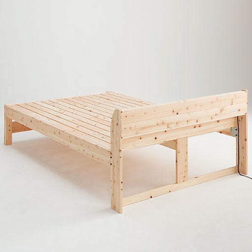 ■[フレーム]天然木ひのき材(無塗装)・合板 [すのこ]天然木ひのき材(無塗装)■[床面有効寸法(cm)]シングル/幅100×奥行196 セミダブル/幅120×奥行196 ダブル幅139×奥行196■[重量(kg)]シングル/44 セミダブル/47 ダブル/52■電源/2口コンセント(合計1500w)付き ■電源コード/1.2m ●3個口でお届け●日本製【2口コンセント】 【すのこ】 【天然木】(ひのき材)【組立式(2人で)30分程度】【大型別配送】 ※沖縄県や一部島しょ部など配送上の都合によりお届けできない地域がございます。