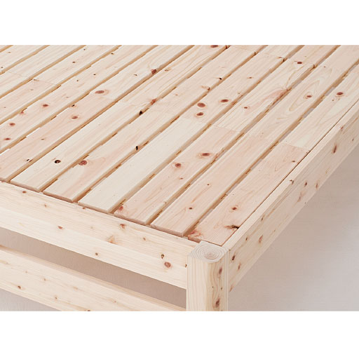 耐荷重500kgの頑丈設計で、「普通のベッドでは不安」という大柄な方にもおすすめです。香りの良い国産ひのき材を使用。すのこ形状の床板だから使い慣れたお布団でもお使いいただけます。