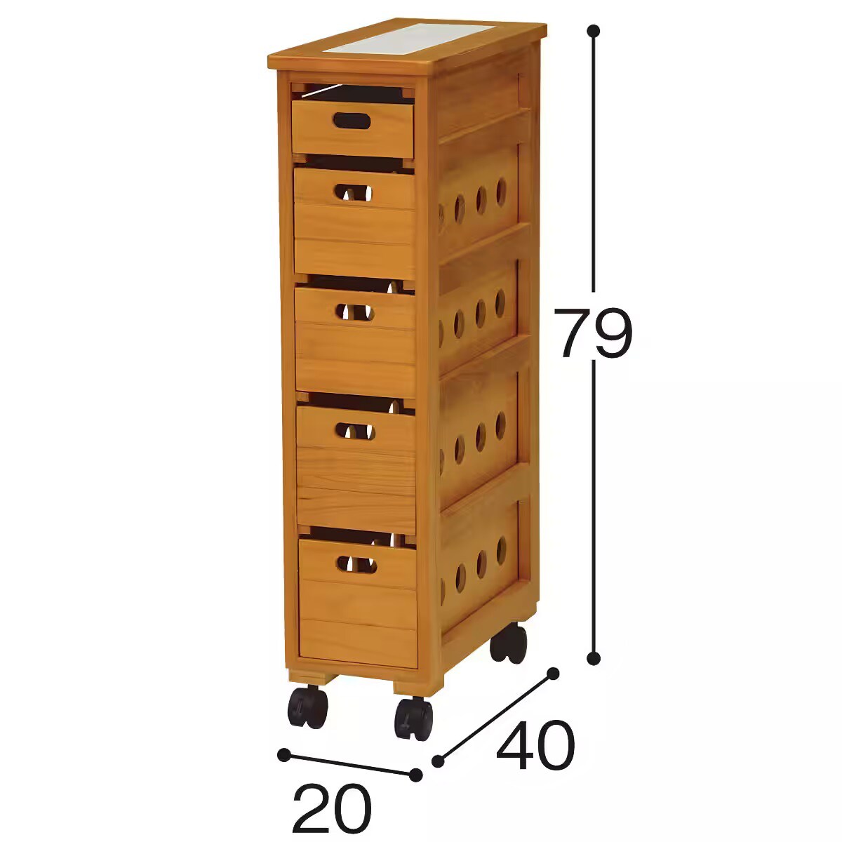 ナチュラル A (幅20×奥行40×高さ79cm)キッチンのすき間を有効活用できる、スリムなキャスター付きストッカーです。