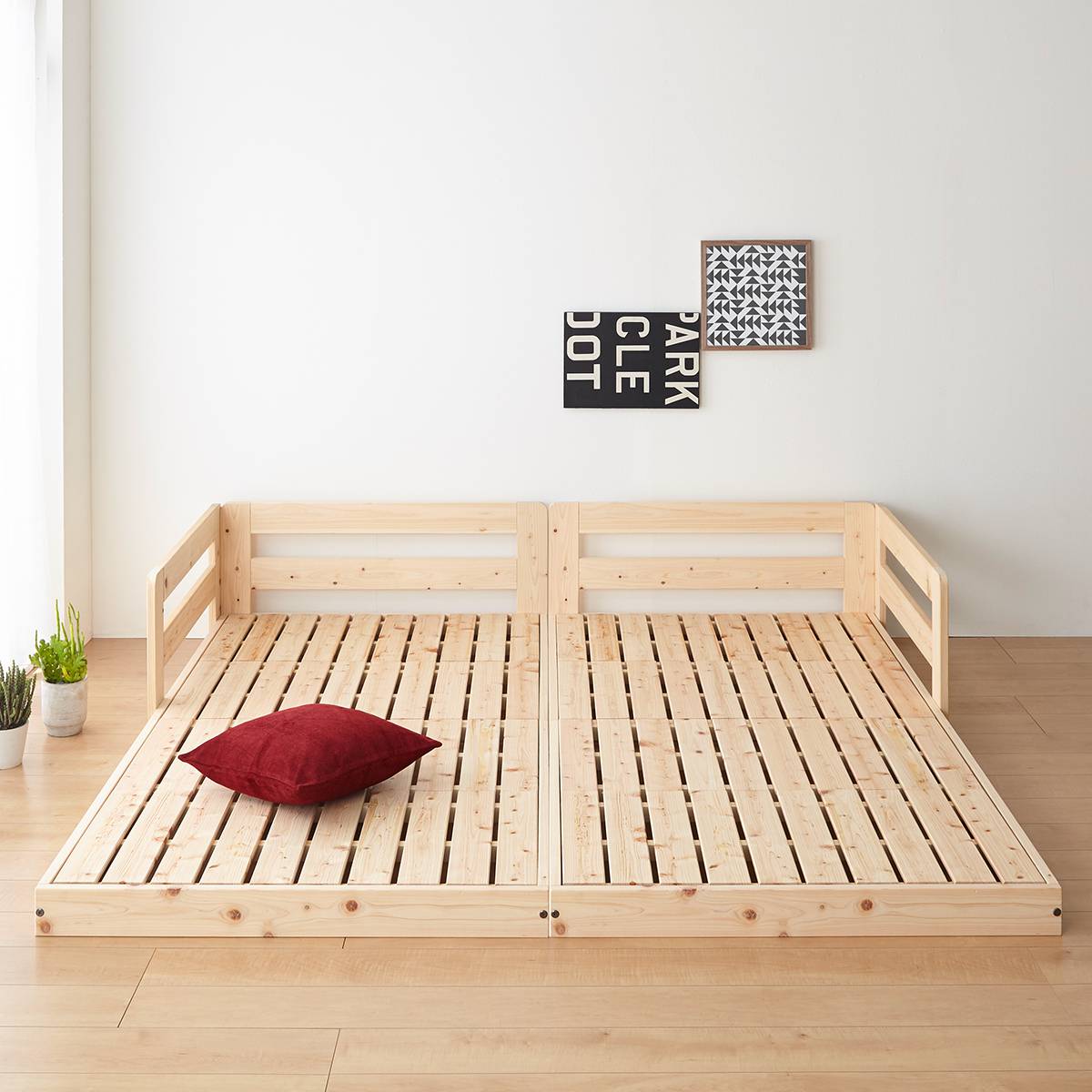 家族川の字でお休みになれる連結可能な国産ひのきベッドです。天然木の風合いを活かすため、無塗装で仕上げました。床面が低いのでお子様のご使用にも安心。国産材を国内で仕上げたメイドインジャパンのひのきベッドです。