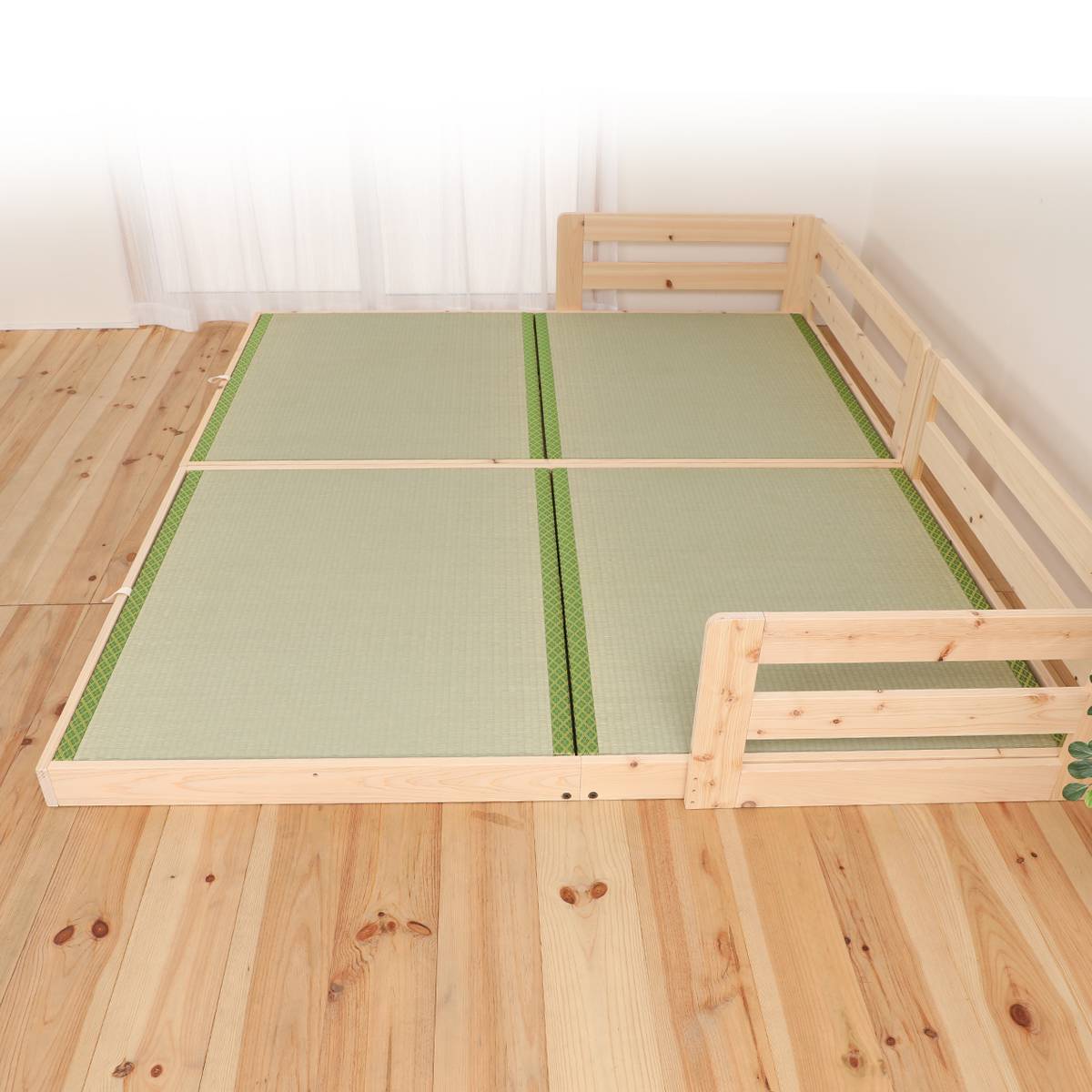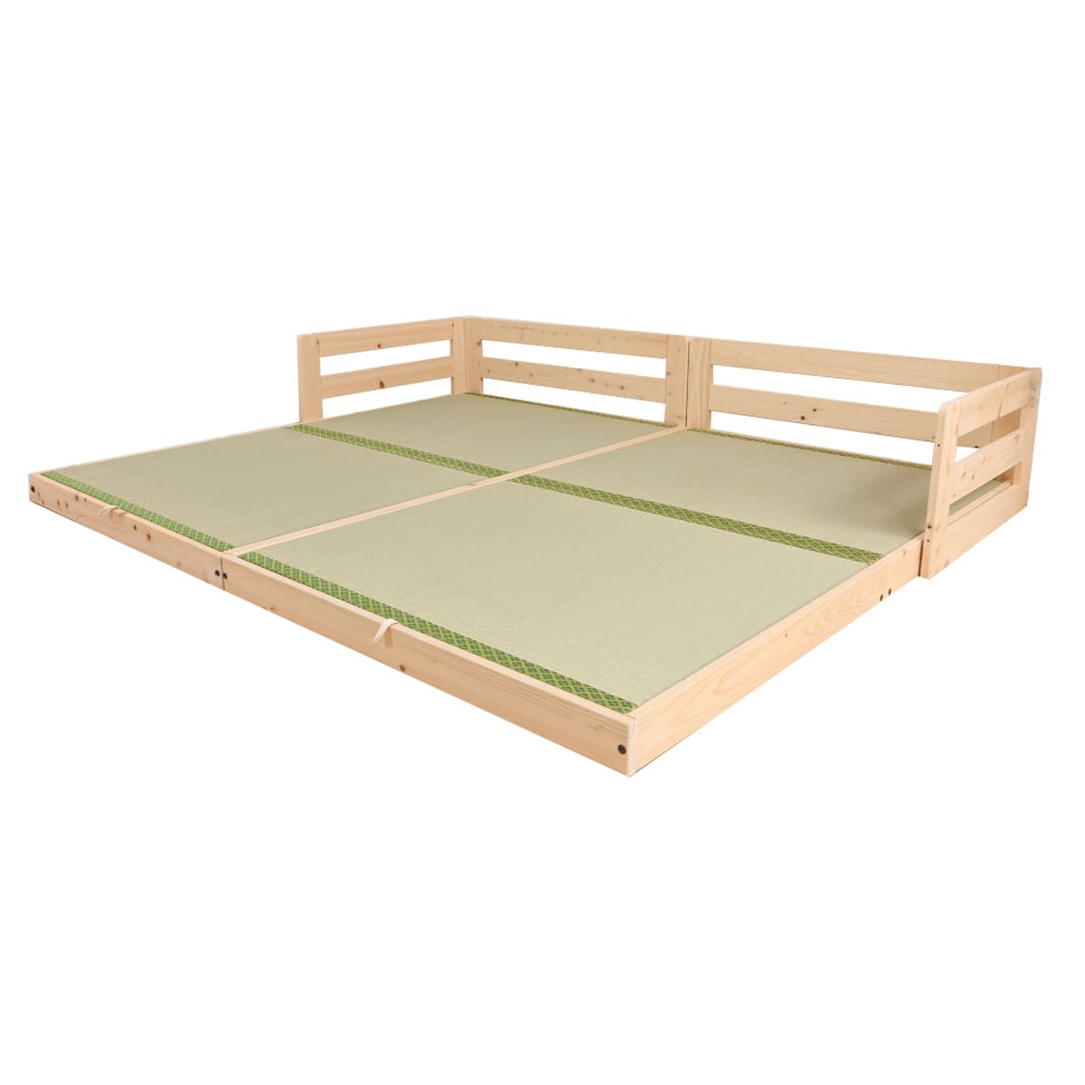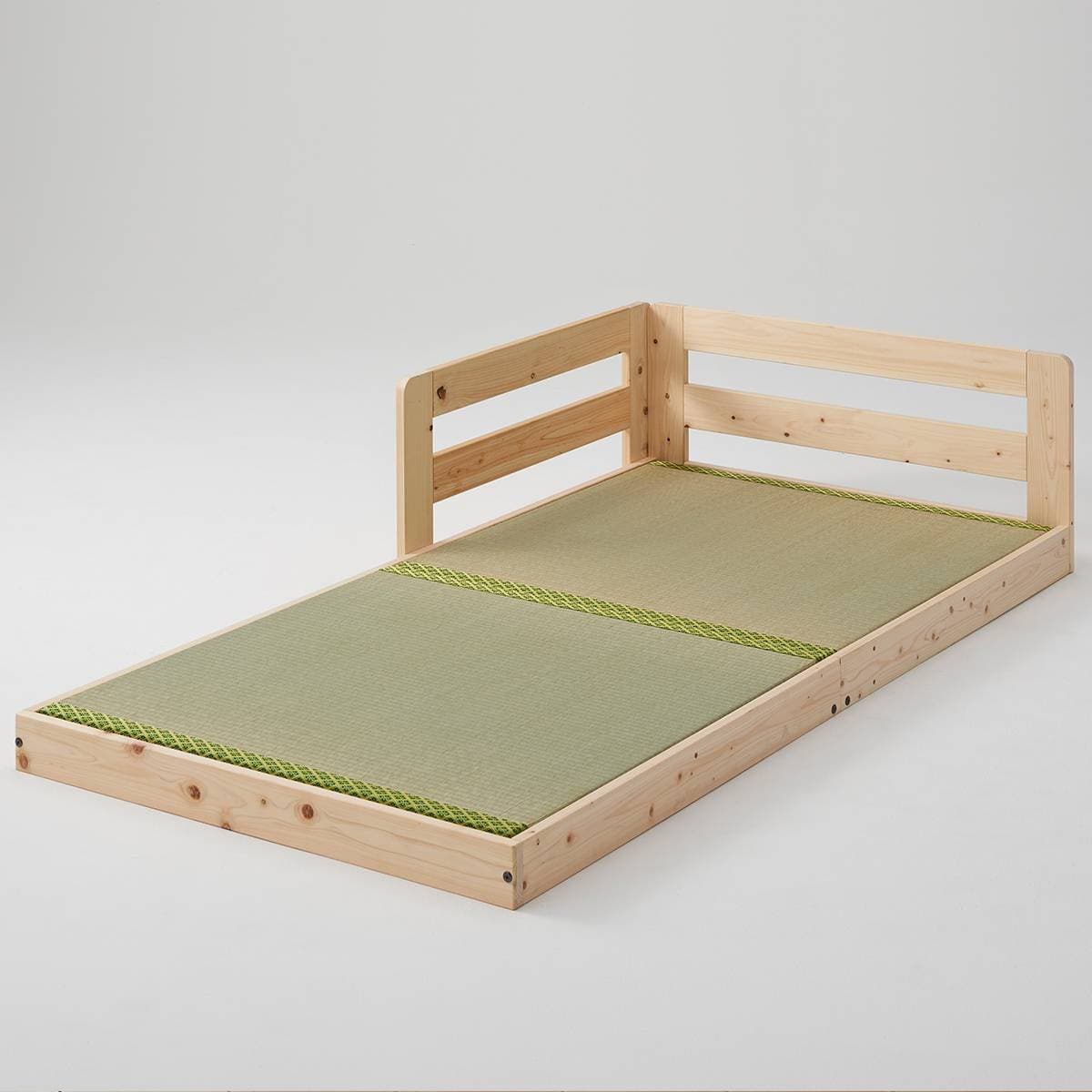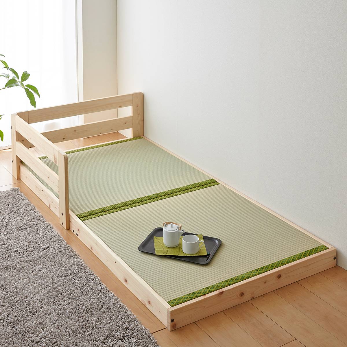 並べても段差ができず、家族川の字でお休みになれる国産ひのきベッドです。ライフスタイルの変化に合わせて自由に組み合わせ可能です。い草の香りでリラックスしてお休みください。布団のずり落ちを防ぐサイドガードつき。一年を通して快適にお使いいただけます。