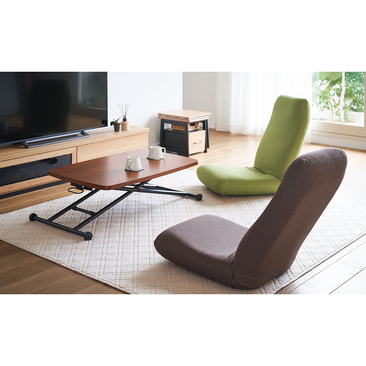 (奥から) グリーン・ブラウンシンプルなデザインでインテリアにもなじみます。