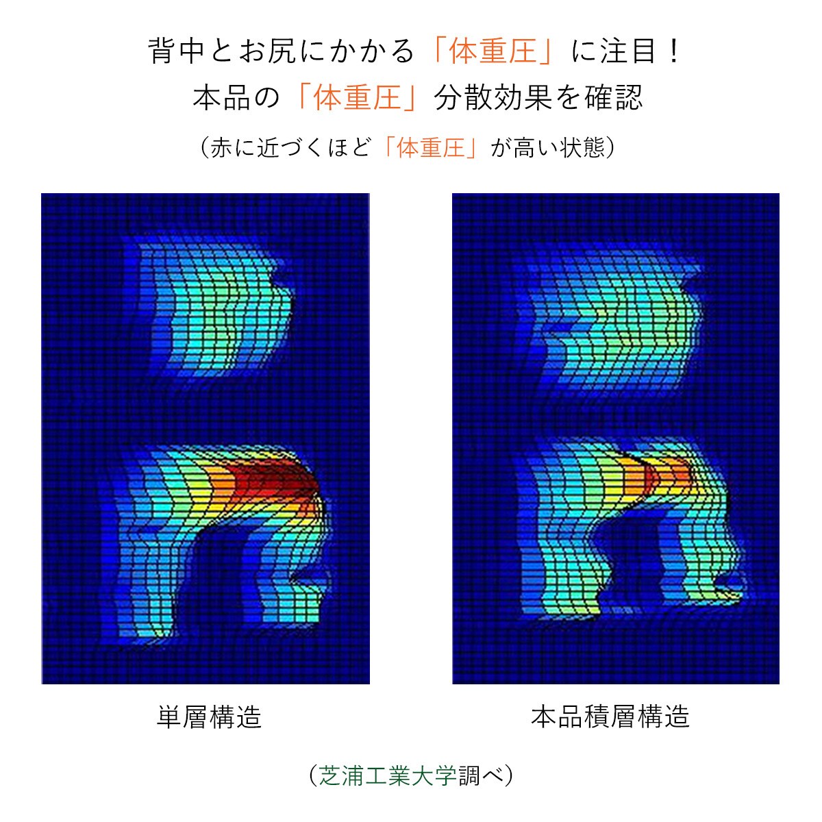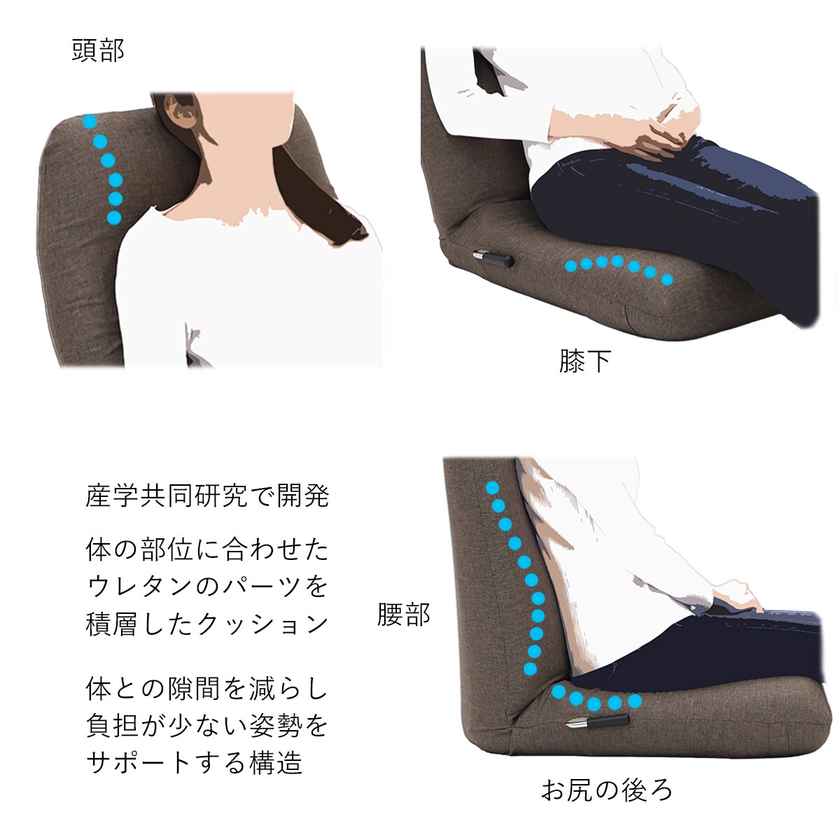 芝浦工業大学 花房昭彦教授芝浦工業大学の研究室が持つ測定・解析技術と座椅子メーカーの経験を結集して開発しました。