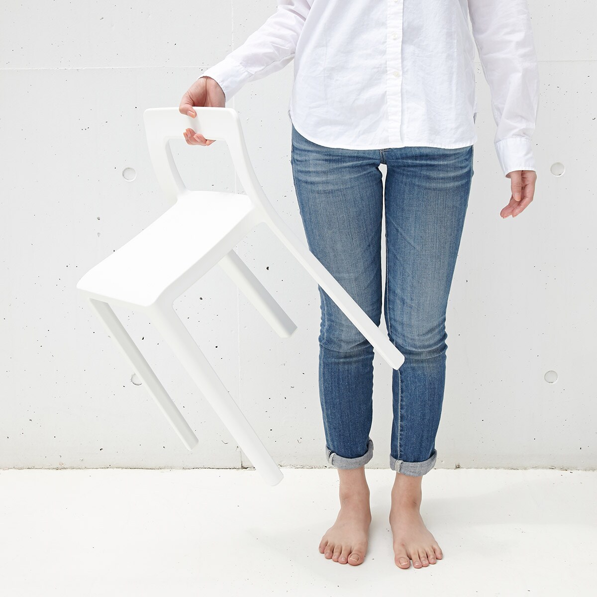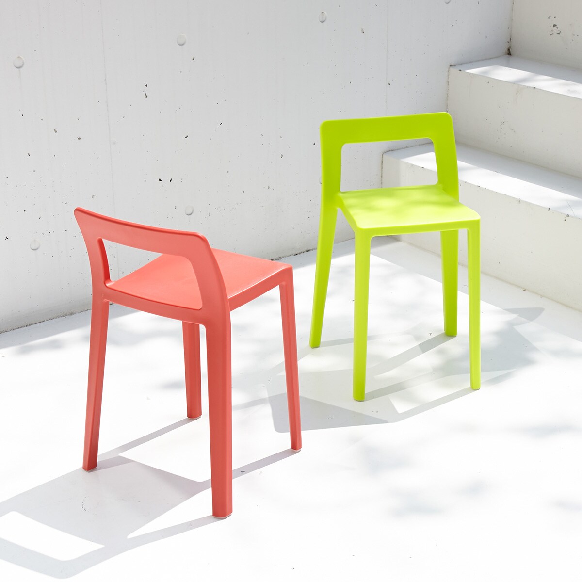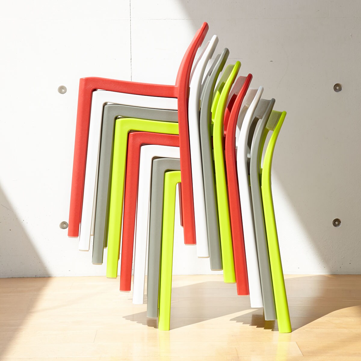 人が安定して座れる最小限のサイズをコンセプトに作られたスタッキングチェアです。限られた居住スペースでも邪魔にならず、日本人の体型にフィットするように座面幅や背もたれの高さにこだわって設計されました。欧米の椅子と比較するとコンパクトで軽量なので、移動やお手入れもラクラクです。おしゃれなデザインとカラーでベランダやキッチン・玄関などのアクセントにも。最大8脚までスタッキングできるので、来客用やコミュニティスペースにもおすすめです。